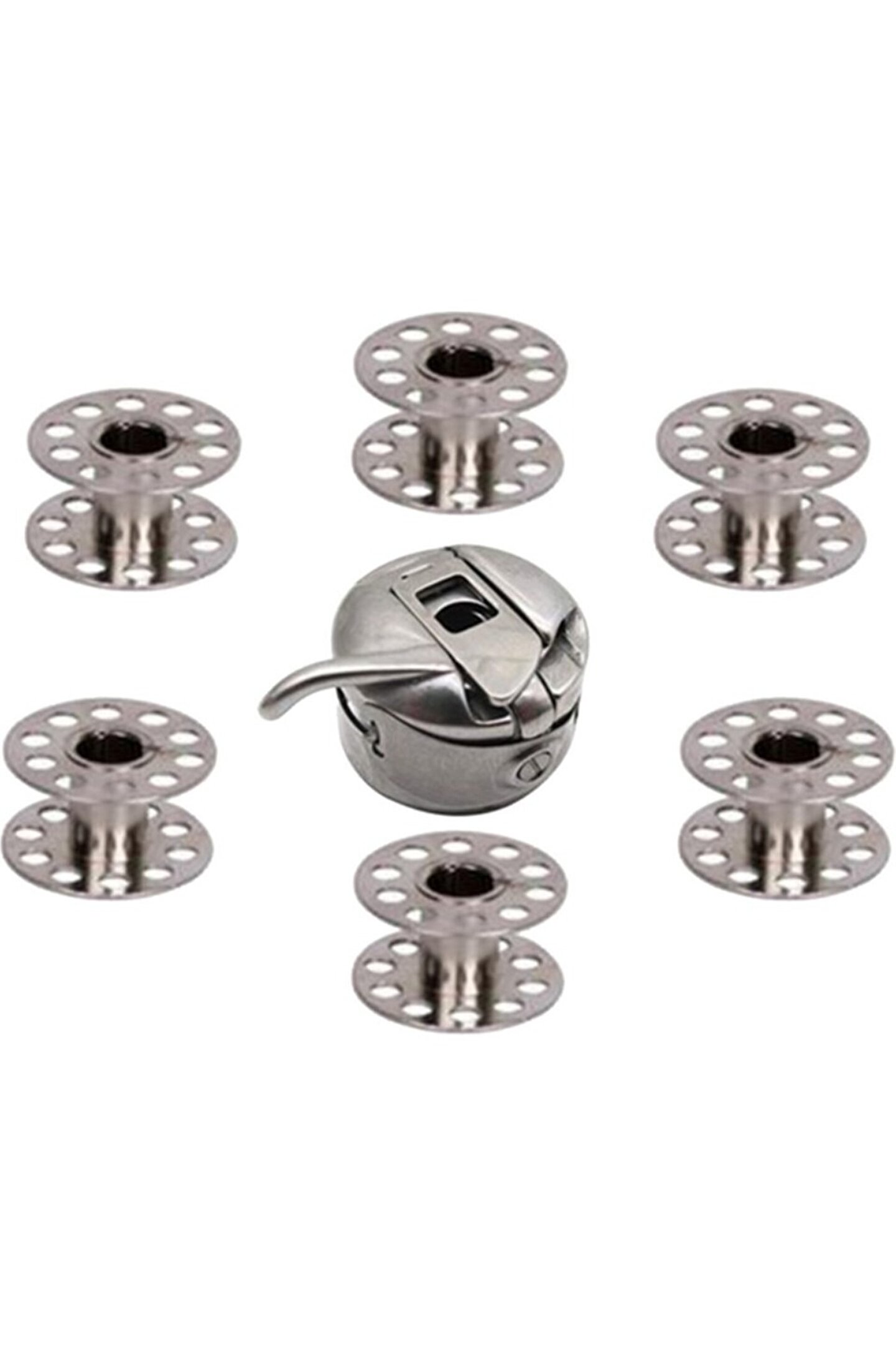 Ürün içeriği (5 Adet metal masura ve 1 Ader metal mekik) Tüm ev tipi dikiş makineleri ile uyumludur