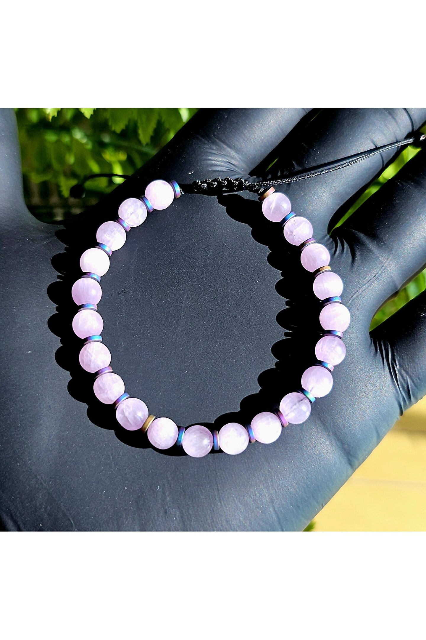 - El yapımı tasarımıyla öne çıkan bu bileklik, her bir detayı özenle işlenmiş 6mm zirve kalite kunzit doğal taş kullanılarak üretilmiştir; - Doğal taşın eşsiz dokusu ve benzersiz desenleri, bu bilekliğe otantik bir görünüm kazandırırken, her kıyafetle uyum sağlayacak şık bir aksesuar oluşturur; - Özel günlerde veya günlük kullanım için ideal olan bu bileklik, hem zarifliği hem de dayanıklılığı bir arada sunar;