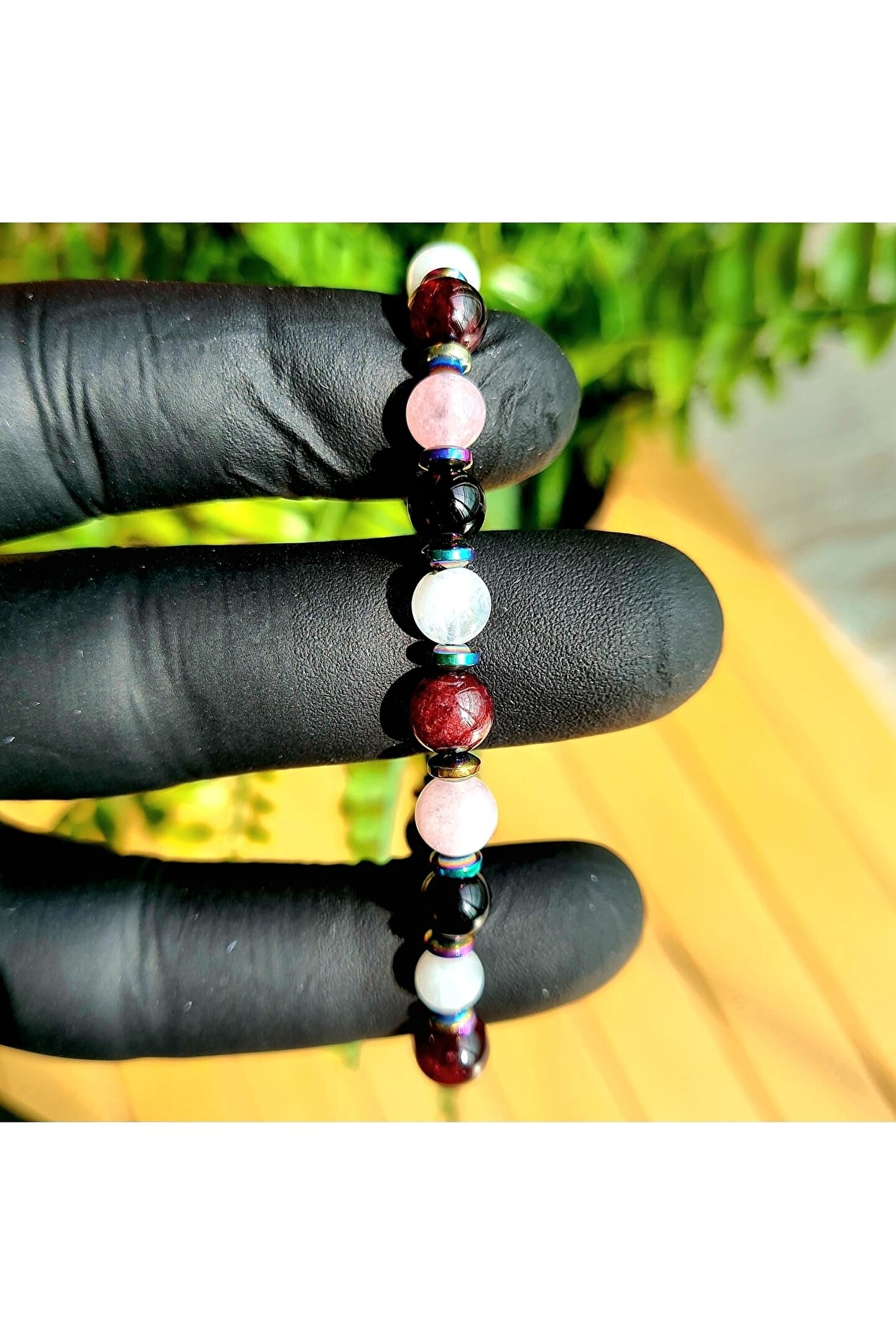 Akrep burcu bileklik, akrep burcu özelliklerini yansıtan doğal taşlardan üretilmiştir; Obsidyen, kırmızı garnet, kunzit ve ay taşı gibi değerli taşlar, bilekliğin şıklığını ve anlamını artırır; Doğal taş kullanımı sayesinde her bileklik benzersiz ve otantik bir görünüm sunar; Akrep burcu bileklik, hem günlük kullanım hem de özel günlerde tercih edilebilecek zarif bir aksesuardır;