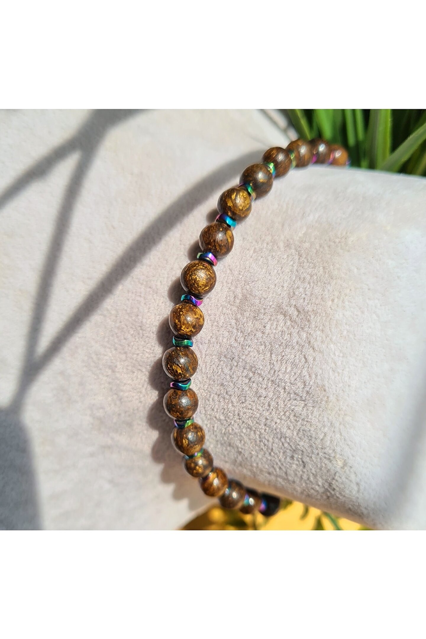 Ürünlerimiz %100 gerçek doğal taşlar kullanılarak oluşturulmuştur. ; Taşlar tarafımızca özel olarak seçilerek bileklik haline getirilmiştir. ; Deniz, duş vb. alanlarda gevşeme yapmaz. Sorunsuz şekilde çıkarmadan kullanabilirsiniz. ; Taşların çapları fotoğraflarda mevcuttur. ; Boyut: Taşlı kısım 14-15cm'dir. ; Max. uzunluk 24-26cm'dir. Asansörlü yapısı sayesinde her kişi için uygundur. ; Ultra sağlam 1mm, çift katman özel tasarım ip kullanılmıştır. ; Bronzite Taşı Faydaları Zihinsel dinginliği ortaya çıkaran Bronzite özellikle sinir sisteminin gevşemesine faydalıdır. ; Bunalım ve stresle başa çıkmada enerji yenileyerek rahatlama sağlar. ; Sakral çakraya olan faydası nedeniyle genellikle sindirim sistemi ve üreme sisteminin daha rahat çalışmasına enerjinin yenilerek temizlenmesine yardımcı olur. ; Bronzite taşı, tam burda kaldım, artık bitti; dediğiniz iç savaşınızı yeniden ve daha güçlü hissederek başlatmanıza; özgüven duygusunu yükseltmeye yardımcıdır. Bu nedenle diğer ismi Savaşçı taşıdır. ; İleriye dönük planlama ve yaratıcılığın ortaya çıkmasına olanak sağlar. Bronzit’in hayal gücüne olan etkisi ile yaratıcılığınızın doruklarında yepyeni kapıların karşınıza çıkmasına hazır olun. ; İçeriğinde bulunan demir minerali yorgunluk ve bitkinliği gidermeye yardım eder. ; Ayrıca farklı şifalı taşlarla bir arada kullanılabilme özelliği de vardır ki, bu özellikle şifasını en yüksek noktaya taşımasına negatif enerjiyi kişiden daha çabuk uzaklaştırmasına yardım eder. ; Bilhassa meditasyon ve yoga yapan kişinin üzerinde yahut çevresinde bulunması; rahatlama, iç huzur, özgüven duygularını daha yoğundan hissetmesine yardımcı olur; bu sebeple bu tarz ritüellerde sıklıkla tercih edilmektedir. ;