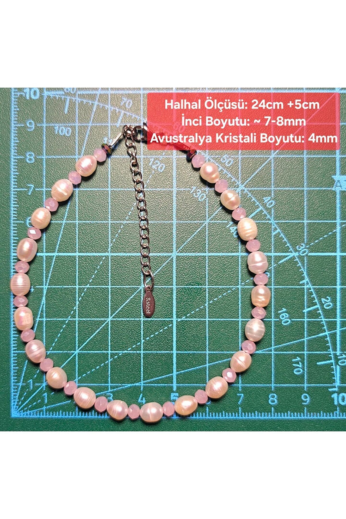 El yapımı tasarımıyla öne çıkan bu inci doğal taş halhal, toz pembe rengiyle şıklığınızı tamamlar.; İnci taşının zarif dokunuşu, paslanmaz çelik materyalin dayanıklılığı ile buluşarak hem estetik hem de pratik bir aksesuar deneyimi sunar.; Doğal taş kullanımı sayesinde her biri benzersiz ve özel tasarımıyla dikkat çeker; her kıyafetinizle uyum sağlayacak zarif detaylara sahipsiniz.; El yapımı olmasıyla her biri ayrı bir hikaye barındıran bu halhal, hem kişisel tarzınıza özgünlük katarken, aynı zamanda doğallığı da ön plana çıkarır.;