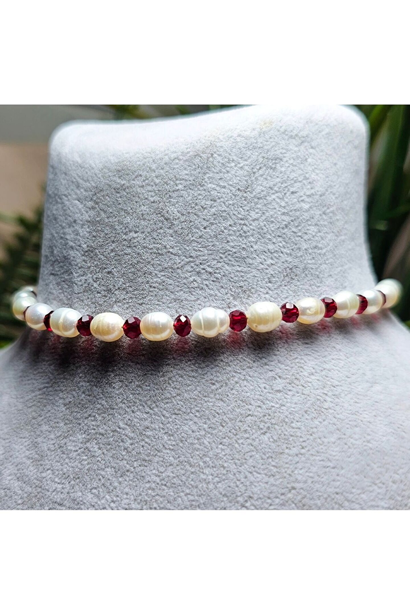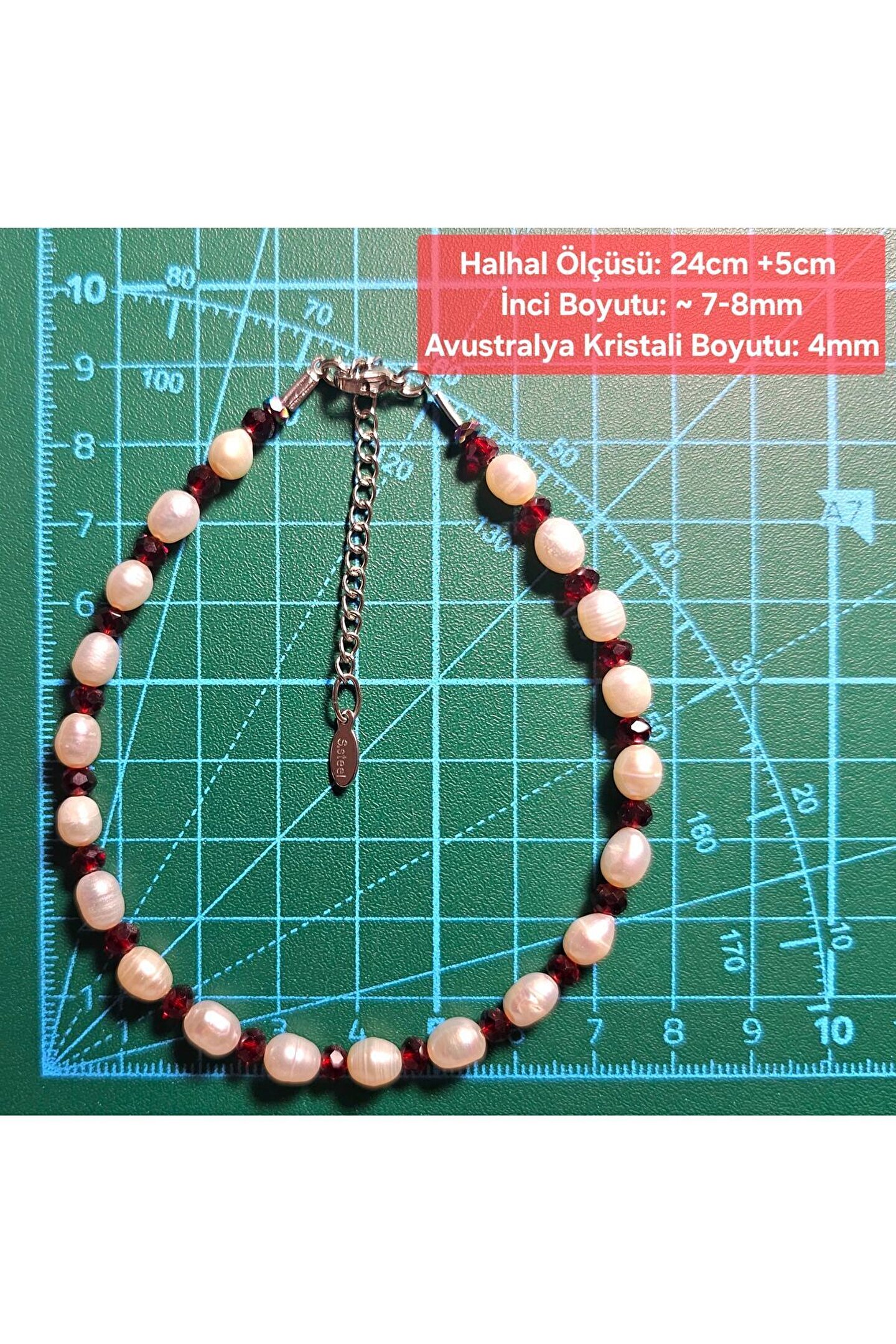 Singincraft İnci Doğal Taş Halhal - Yakut Kırmızı - 1 Adet ( El Yapımı Tasarım Ürünler )