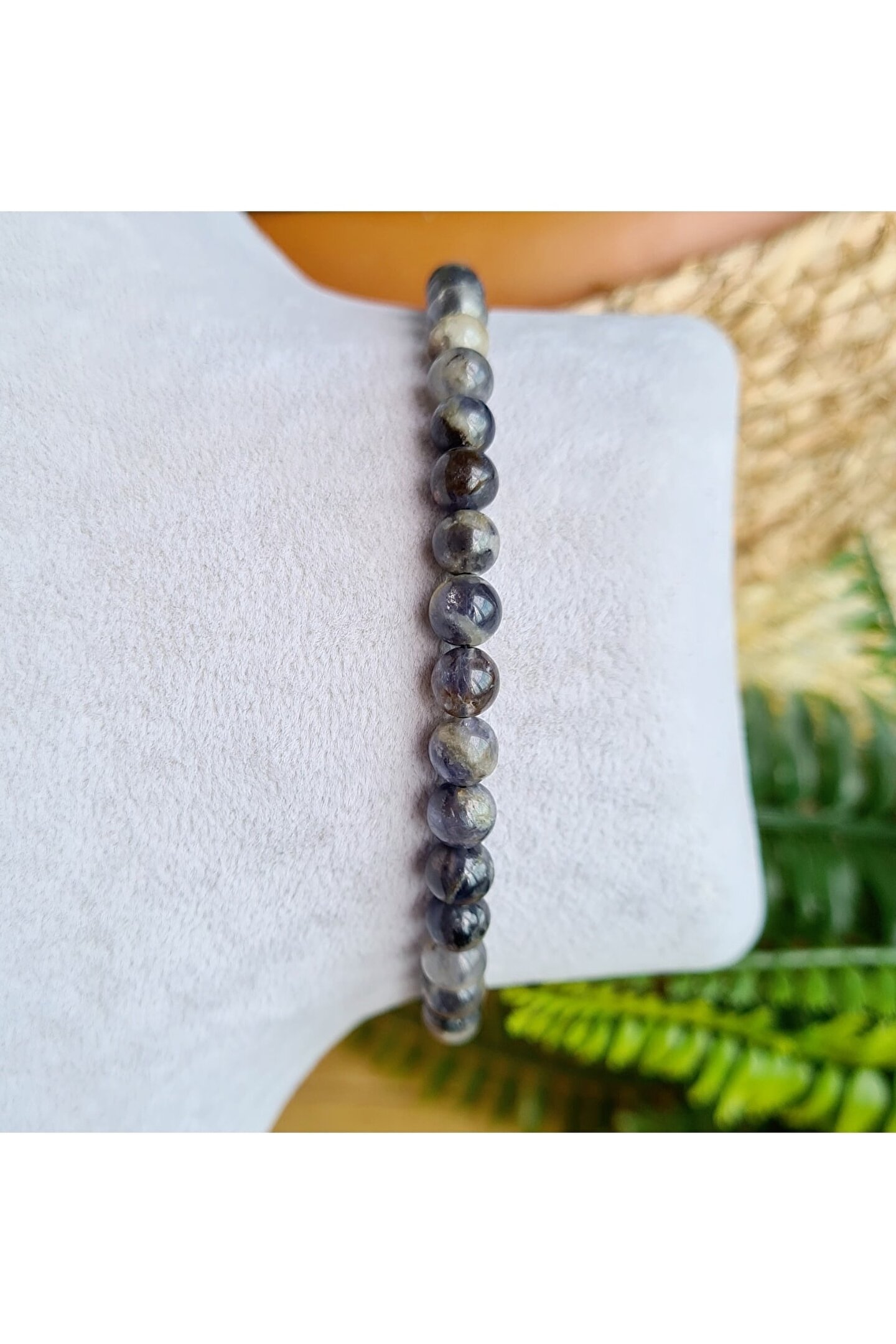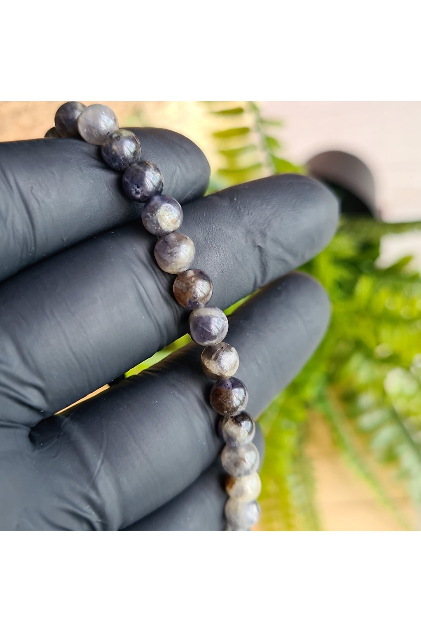 El yapımı tasarımıyla öne çıkan bu bileklik, benzersiz ve otantik bir görünüm sunar; Doğal taş kullanımı sayesinde her bileklik, doğanın saf güzelliğini parmaklarınıza taşır; Iyolit taşı, bilekliğinize zarif bir dokunuş katarken, aynı zamanda şıklığınızı tamamlar; El işçiliğiyle üretilen bu ürün, hem kaliteyi hem de estetiği ön planda tutar;