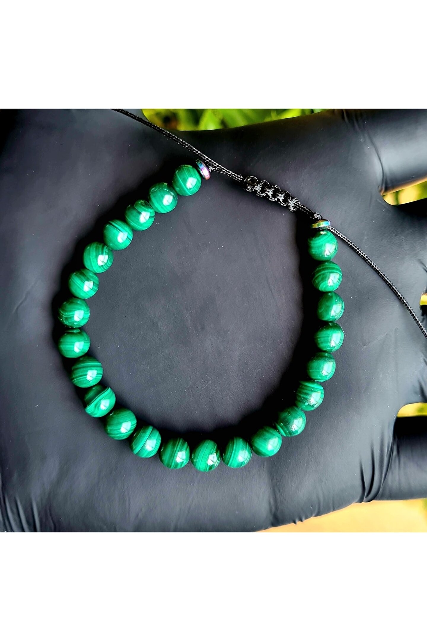 El yapımı tasarımıyla öne çıkan bu bileklik, her bir bileklik benzersizdir ve doğal taş kullanımıyla dikkat çeker; Malahit ve malakit gibi doğal taşların zarif kombinasyonu, hem şıklığı hem de doğallığı bir arada sunar; Malahit taşı, mavi rengiyle göz alıcı bir görünüm sağlarken, malakit taşı ise altın sarısı tonuyla sofistike bir dokunuş katıyor; El işçiliğiyle üretilen bu bileklik, her parça benzersizdir ve kişisel bir hediye olarak da tercih edilebilir;