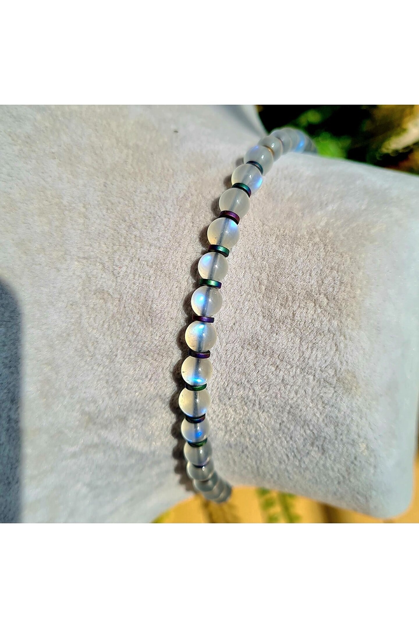 El yapımı tasarımıyla öne çıkan bu bileklik, her bir bileklikte benzersiz bir dokunuş sunar; Doğal taş kullanımı sayesinde, her bileklik farklı bir karaktere ve estetik bir görünüme sahiptir; Aytaşı taşı, bileklikte zarif bir parlaklık ve şıklık sağlar; Taş çapı 5; 2mm olan bu bileklik, hem rahatlık hem de zarafet sunar;