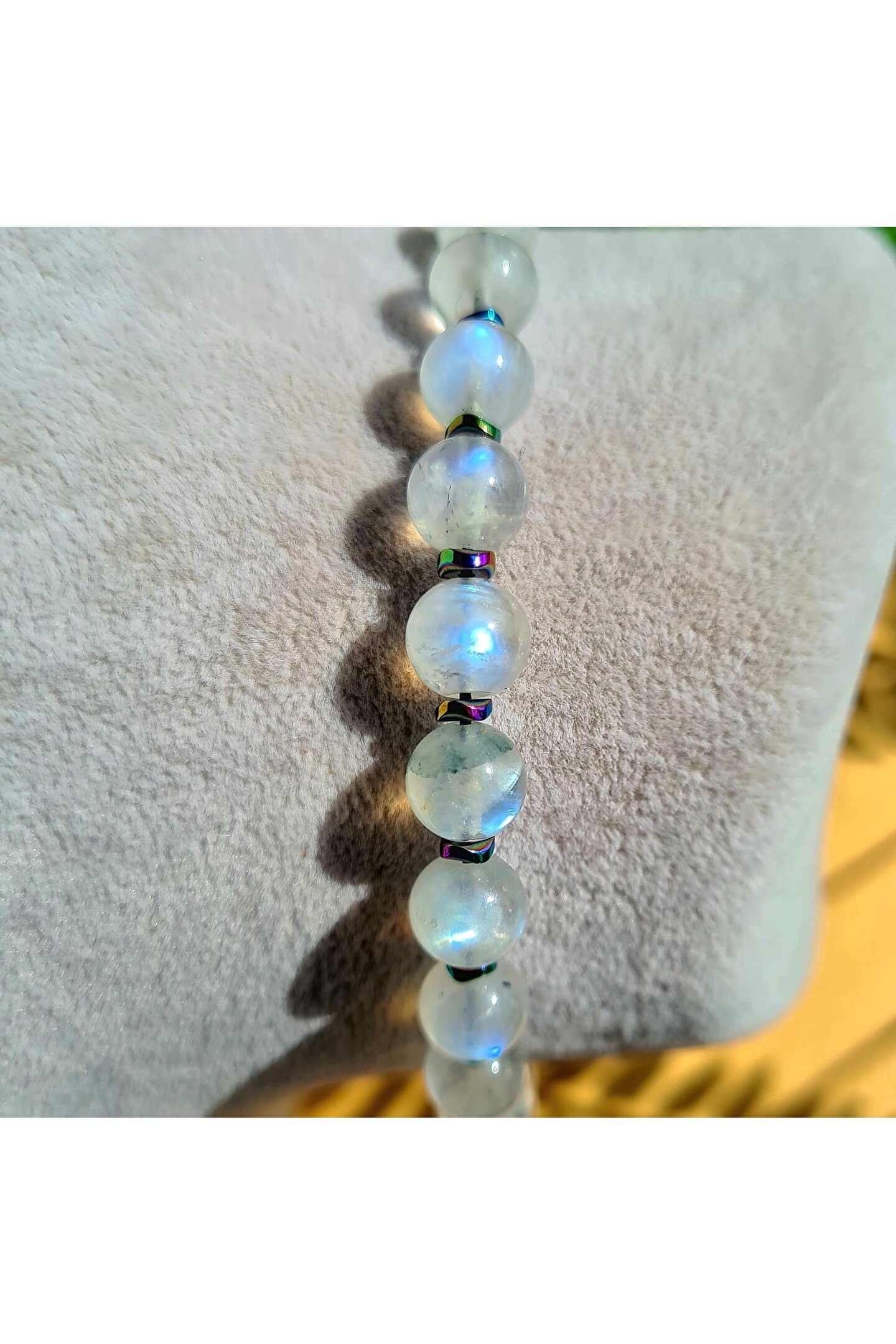 - El yapımı tasarımıyla öne çıkan bu bileklik, her bir bileklikte benzersiz bir dokunuş sunar; - Doğal taş kullanımı sayesinde, her bir bileklik farklı bir renk ve desen sergileyerek kişisel tarzınıza özgün bir hava katar; - Aytaşı taşı, hem şıklığı hem de zarafeti temsil eder; bu bileklik ile kendinizi özel hissetmenizi sağlar; - Taş çapı 8.2mm olan bu bileklik, zarif ve modern bir görünüm sunarken konforlu bir kullanım vaat eder; - El işçiliğiyle üretilen bu ürün, kaliteyi ve estetiği bir arada sunarak uzun süreli kullanım için idealdir;