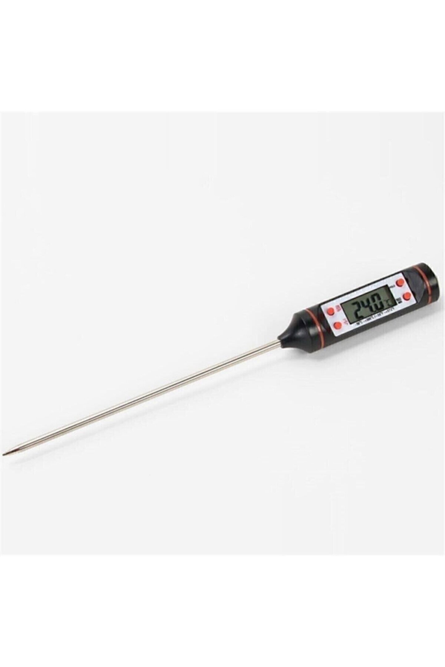 Dijital Gıda Termometresi Yiyecek İçecek Sıcaklık Ölçer Özellikle tarifi hassas olan özel yemekler için vazgeçilmez bir üründür. Bebek maması ve yoğurt gibi belli sıcaklıklarda pişmesi gereken yiyeceklerin sıcaklıklarını ölçmek için kullanılır. Ayrıca dondurulmuş gıdaların elli sıcaklığa gelene kadar ısınmasının takibi içinde kullanabilirsiniz. Ürün Özellikleri ; Paslanmaz çelik sensör ; Sıcaklık ölçüm aralığı ( -50 °C ile 300 °C ) ; Santigrad ve Fahrenight olarak ölçme imkanı ; Kullanılmadığı durumlarda otomatik kapanma ; Sensör hata gösterimi ; Önceki ölçüm hafızası ; Hassasiyet 0,1°C ; Paket İçeriği ; Bir adet Dijital Gıda Termometresi Yemek Sıcaklık Ölçer ;