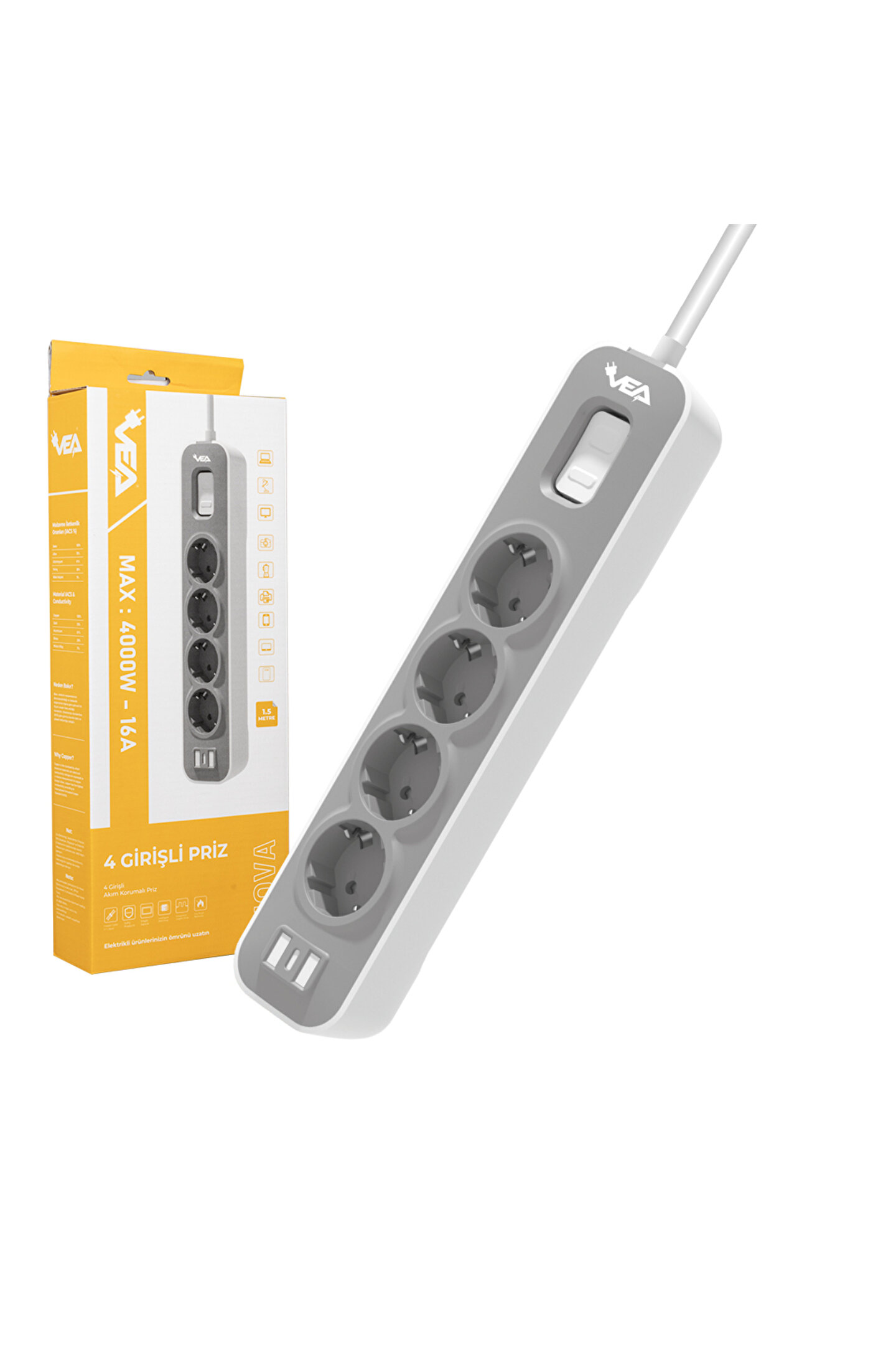 Vea VE-NOVA104 A Class 4'lü Anahtarlı 1.5 Metre Grup Priz Özellikleri