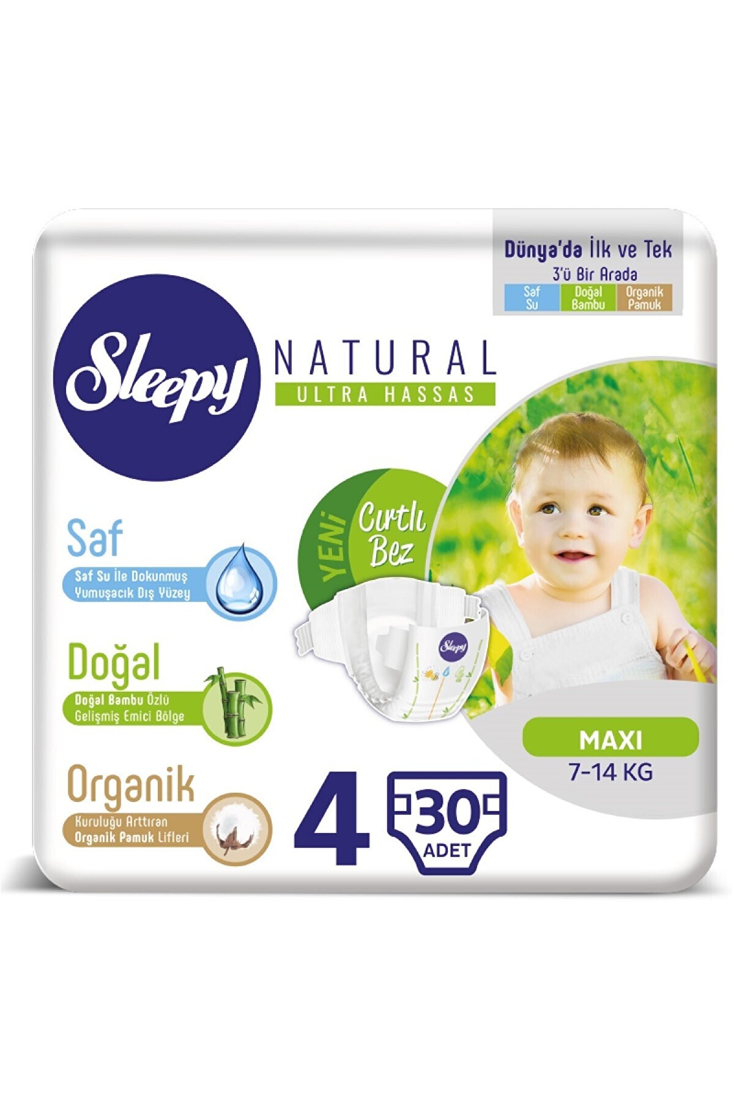 Jumbo boyutu sayesinde 7; 14 kg arası bebekler için ideal bir kullanım sunar; Bantlı tasarımı ile kolay ve pratik bir giydirme imkanı sağlar; 30'lu paket içeriğiyle uzun süreli kullanım için ekonomik bir seçenektir;