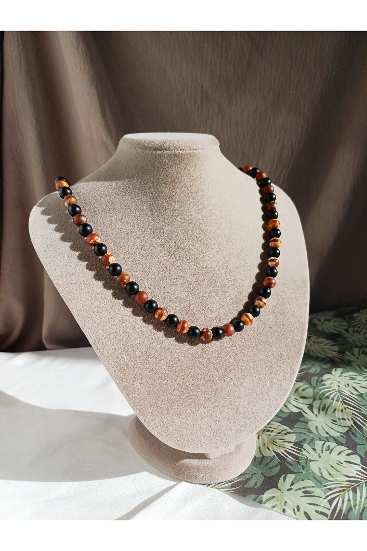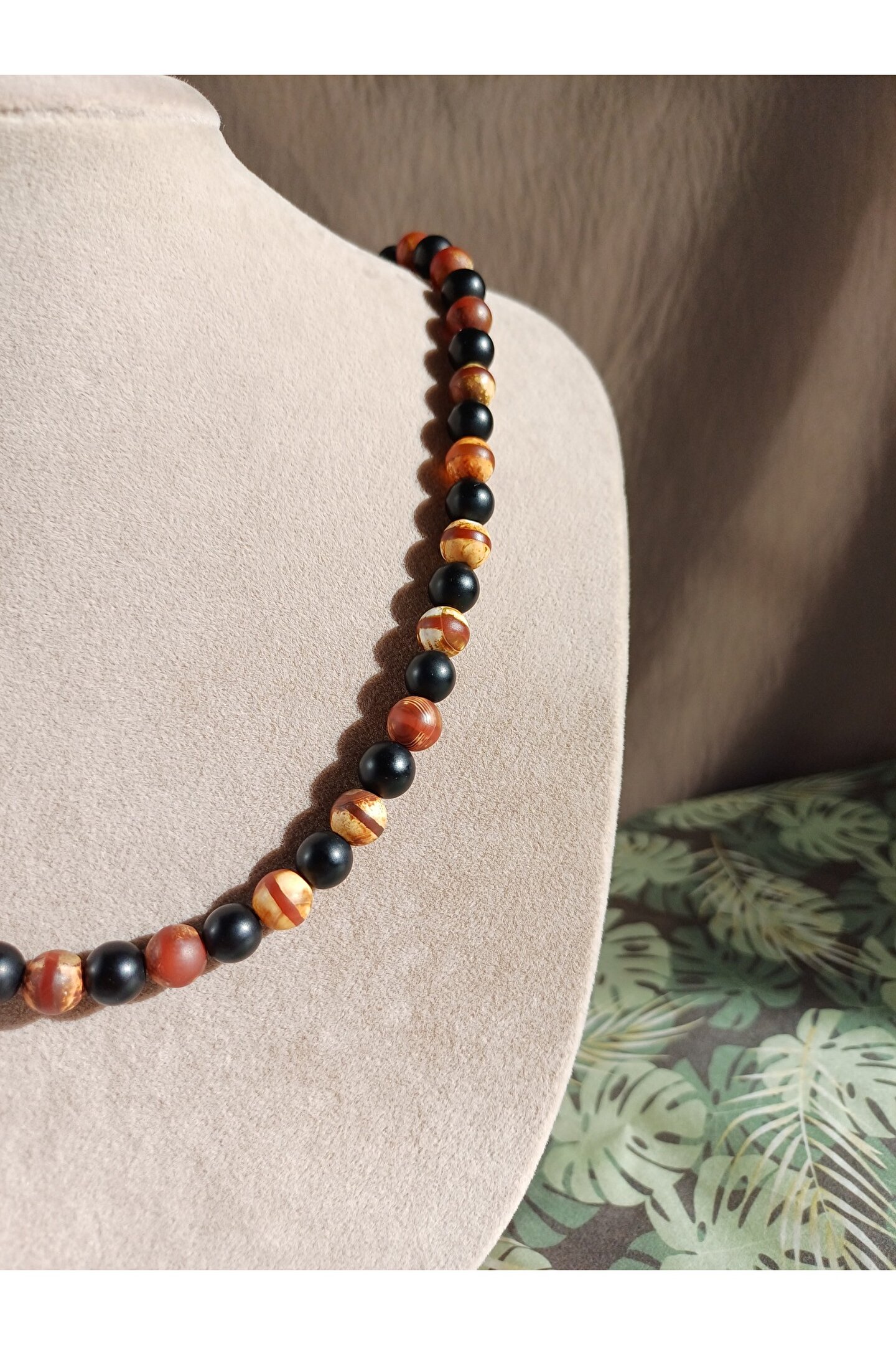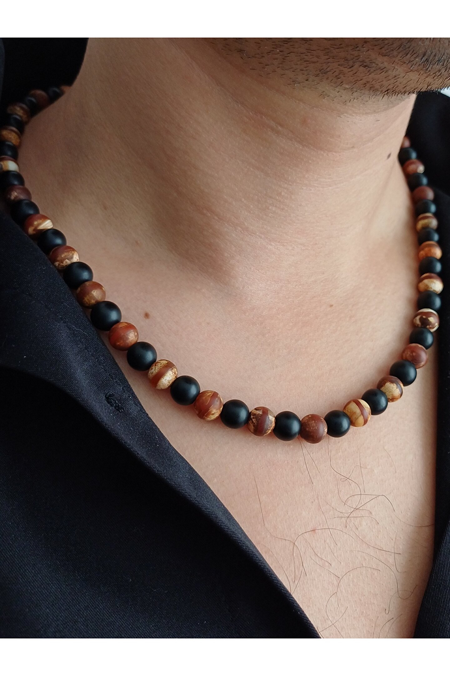 SM DOĞALTAŞ TİBET AKİK & SİYAH ONİKS DOĞAL TAŞ ERKEK KOLYE