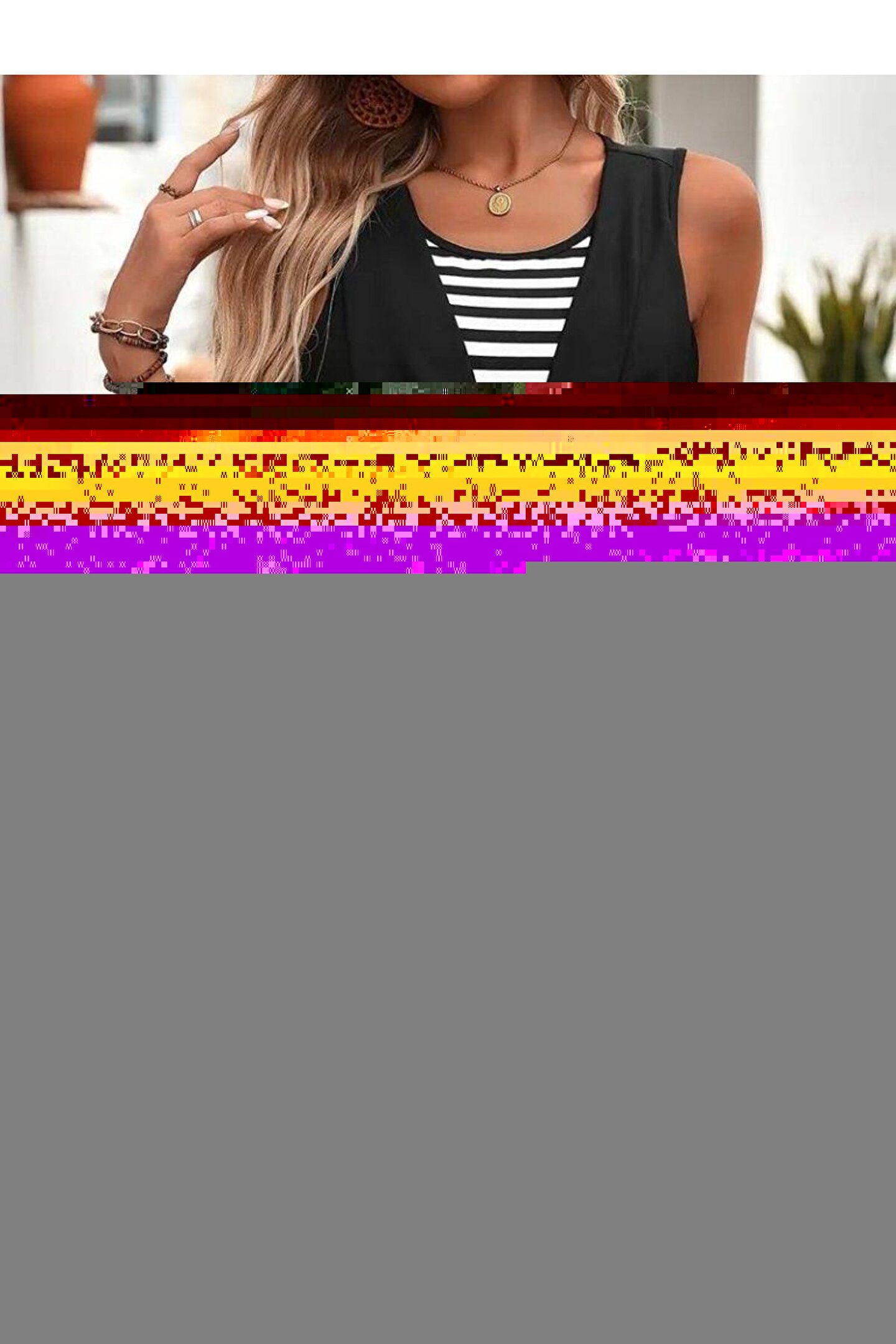 Kadın Kolsuz Degaje Yakalı Blok Desenli Kısa Viskon Elbise