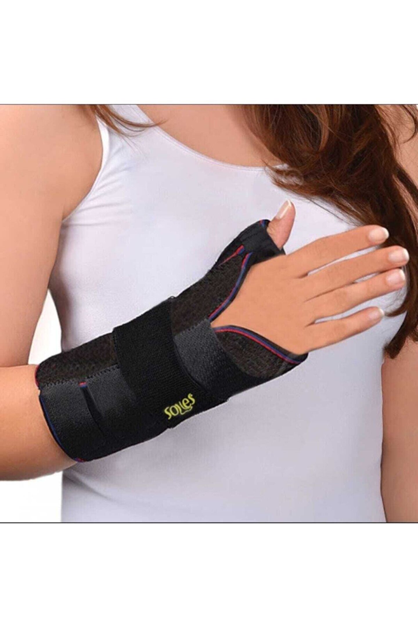 Sağ el bileğini destekleyen başparmak destekli tasarım, günlük aktivitelerde rahatlık ve konfor sağlar; Bedensiz yapısı sayesinde farklı bilek ölçülerine uyum sağlar ve kolayca ayarlanabilir; Sağ el bileği için özel olarak tasarlanmıştır, bu sayede elin anatomik yapısına uygun destek sunar;
