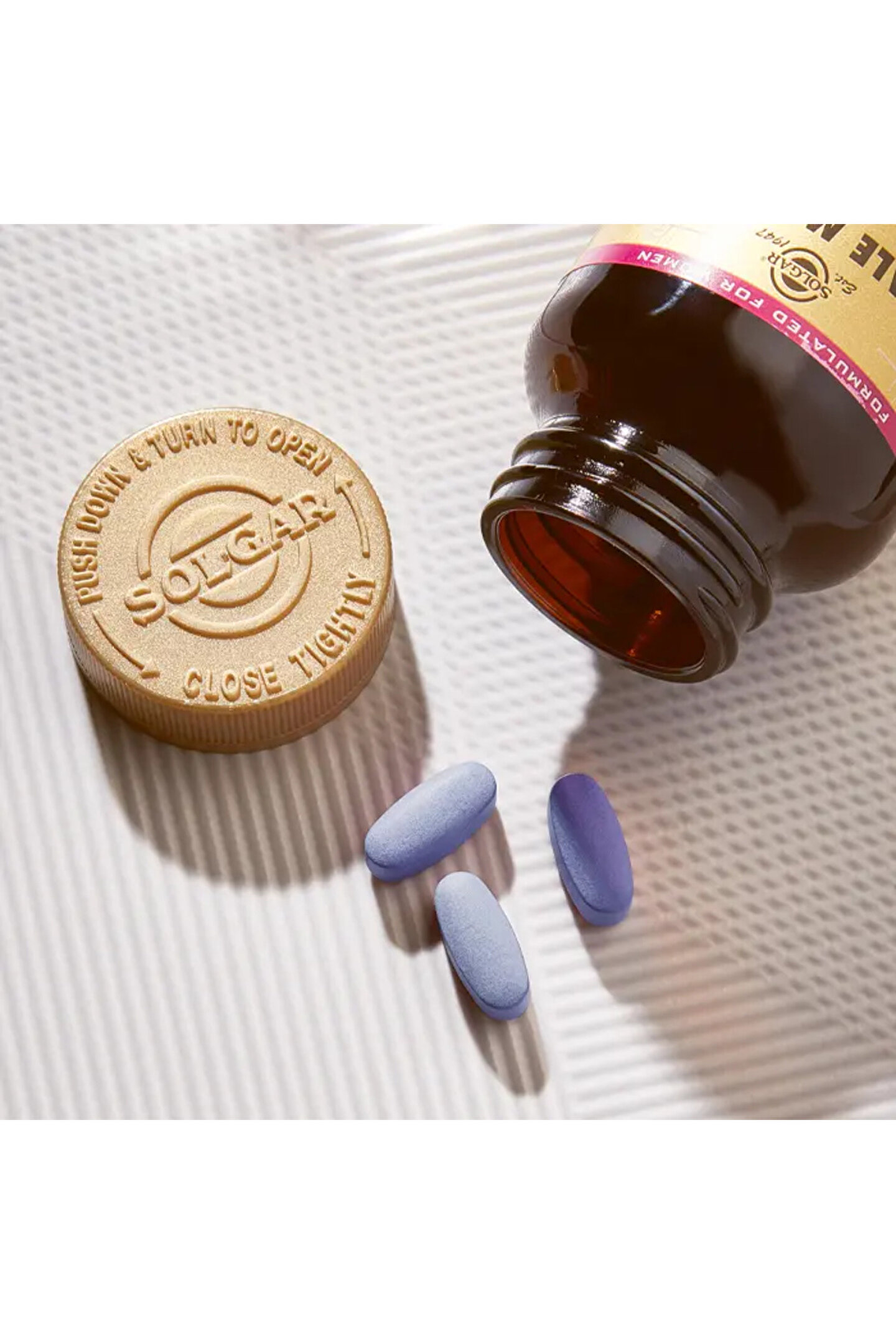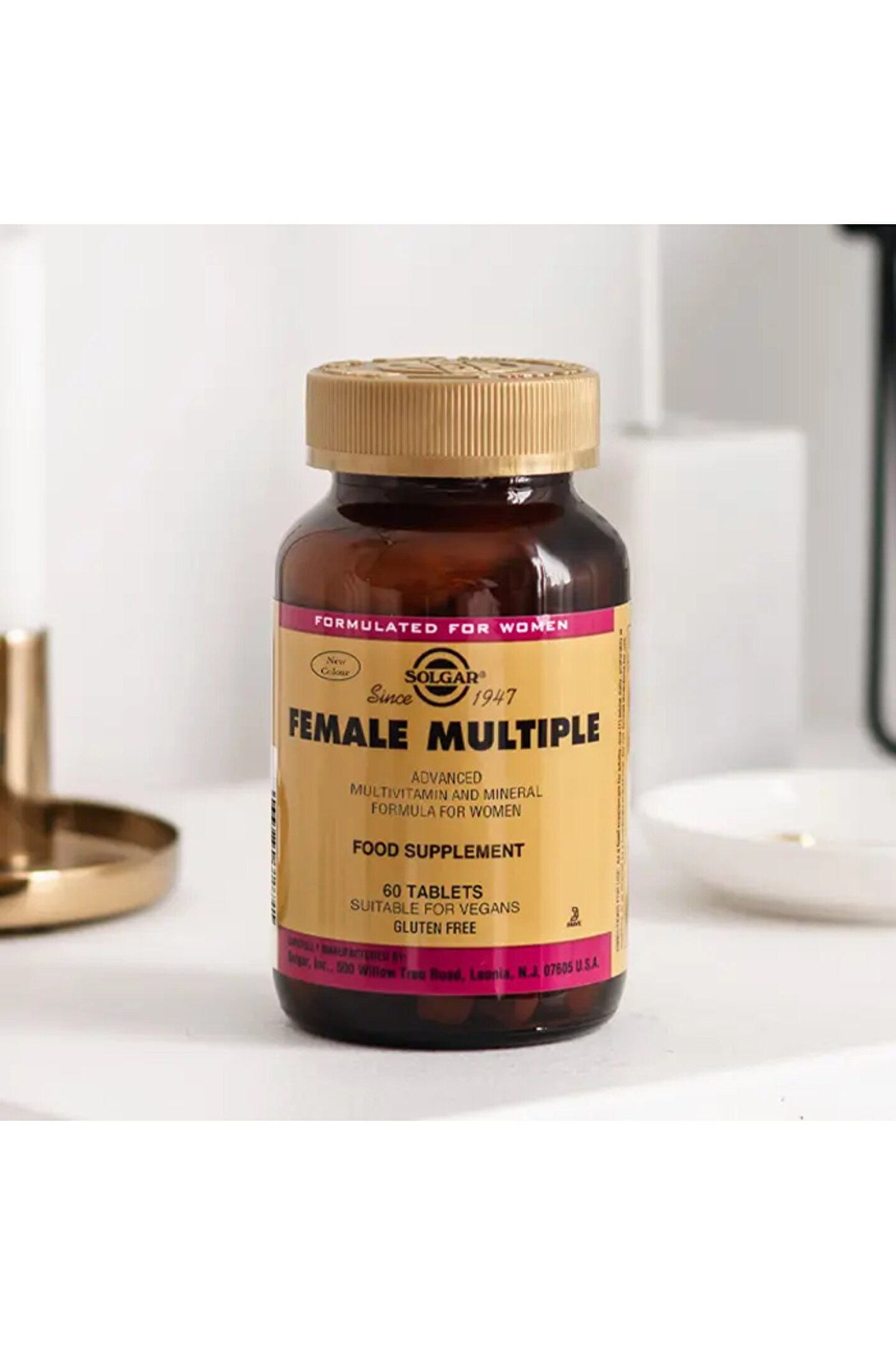 Solgar Female Multiple 60 Tablet Marka: Solgar Ürün adı: Solgar Female Multiple 60 Tablet İçerik Bilgisi: Her üç tabletde; Doğal beta karoten (A vitamini öncülü) 15,000 IU C vitamini 400 mg D vitamini (ergokalsiferal) 400 IU E vitamini (d-alfa tokoferil süksinat) 400 IU K vitamini 20 mcg Tiamin (tiamin mononitrat) 50 mg Riboflavin 50 mg Niasin (niasinamid askorbat, niasin) 60 mg B6 vitamini (pridoksin HCl) 50 mg Folik asit 800 mcg B12 vitamini (kobalamin) 200 mcg Biotin (d-biotin) 300 mcg Pantotenik asit (d-Ca pantotenat) 80 mg Kalsiyum (karbonat, giisinat, sitrat) 400 mg Demir 18 mg İyot (potasyum iyodür) 150 mcg Magnezyum (oksit, glisinat, sitrat) 400 mg Çinko (glisinat, histidinat) 30 mg Selenyum (I-selenometiyonin) 200 mcg Bakır (glisinat) 1,5 mg Manganez (glisinat) 2 mg Krom (nikotinoglisinat) 200 mcg Molibden (glisinat) 50 mcg Sodyum 25 mg Potasyum (potasyum glisinat kompleksi) 99 mg Turunçgil bioflavonoidleri 100 mg Kolin (kolin bitartarat) 100 mg inositol 100 mg Pantetin 7 mg Kokarboksilaz 6 mg Pridoksal-5-fosfat 6 mg Riboflavin-5-fosfat 6 mg Boron (boran glisinat kompleksi) 500 mcg Dong Quai kök ekstresi (4:1) 25 mg Uva Ursi yaprak ekstresi (4:1) 25 mg Vitex Agnus-Castus meyve ekstresi (4: 1) 25 mg Standardize American Ginseng ekstresi 25 mg Milk Thistle ekstresi (4:1) 25 mg Black Cohosh kök ekstresi (4:1) 25 mg Standardize soya izoflavonları ekstresi 25 mg Karatenoid karışımı 172 mcg (alfa karoten.; lutein, zeaksantin, kriptoksantin) Kullanım Önerisi: Günde 1 tablet, tercihen yemeklerden sonra.;