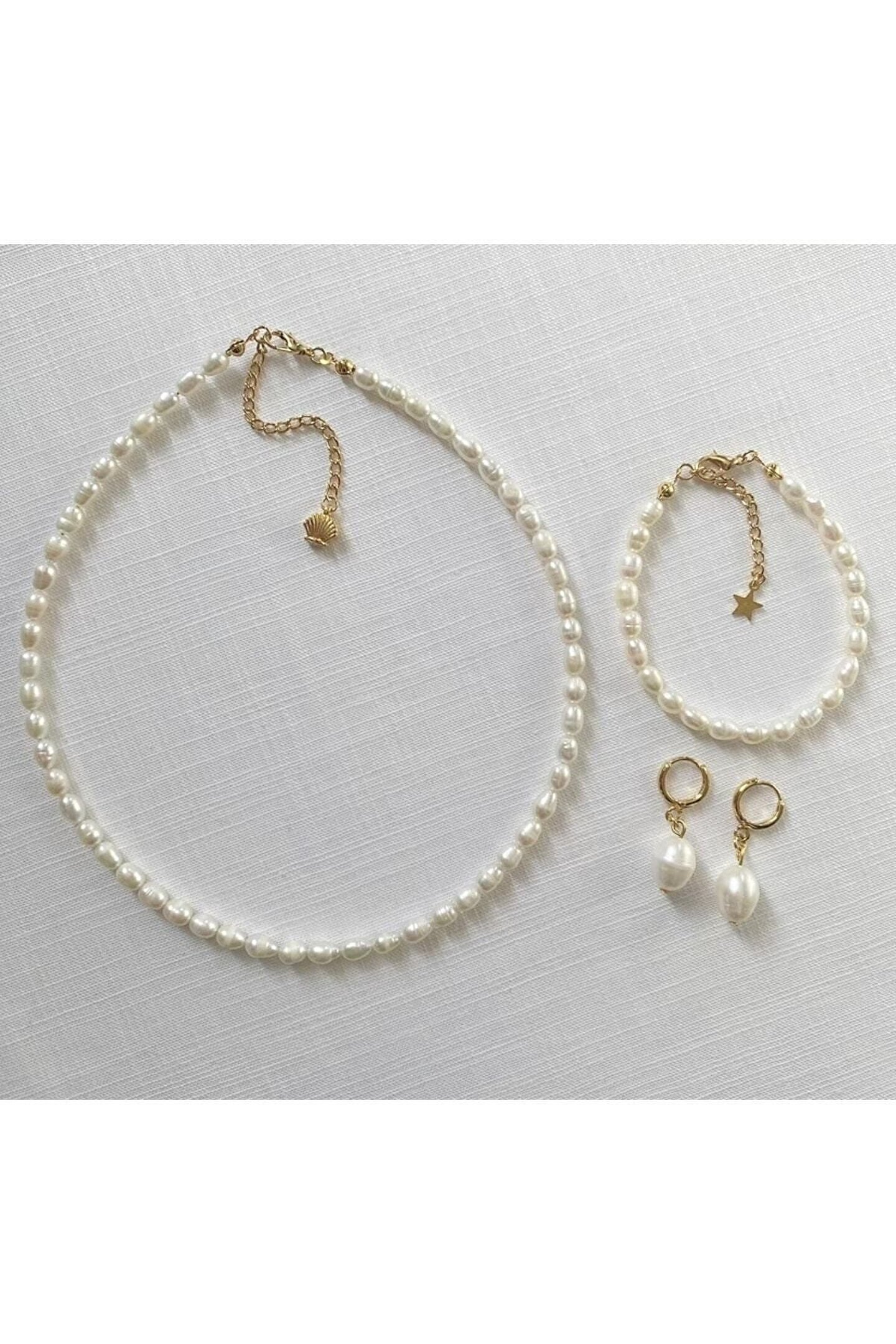 - Gerçek inci kullanılarak üretilmiş, zarif ve şık bir aksesuar seti; - İnci kolye, bileklik ve küpe olmak üzere üç parçadan oluşan bu set, her türlü özel gününüzde veya günlük kullanım için idealdir; - İnci taşı, doğal güzelliği ve parlaklığı ile dikkat çekerken, her türlü kıyafetle uyum sağlar; - Setin her bir parçası, özenle seçilmiş ve kaliteli işçilikle bir araya getirilmiştir, bu da uzun süreli kullanım için dayanıklılık sunar; - İnci kolye bileklik küpe seti, hem modern hem de klasik tarzları bir arada sunarak her zevke hitap eder;