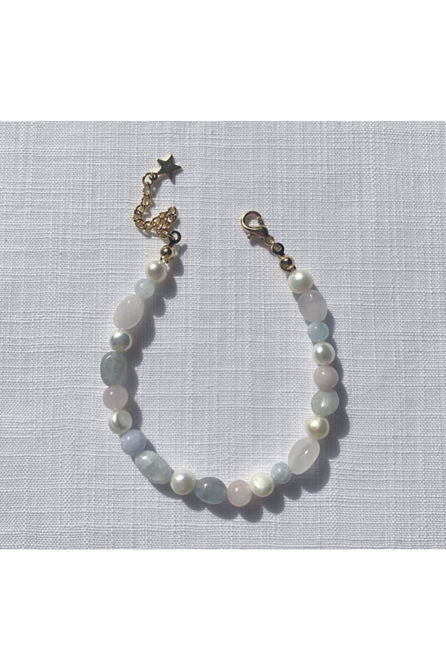 - Gerçek inci taşı ile tasarlanmış, zarif ve şık bir aksesuar; - Akuamarin taşının eşlik ettiği bu bileklik, hem göz alıcı hem de enerjik bir görünüm sunar; - Tatlı su incisi materyali sayesinde uzun ömürlü kullanım ve parlak bir parlaklık sağlar; - Pembe kuvars taşı ile zenginleştirilmiş bu bileklik, feminen ve zarif bir stil vurgusu yapar;