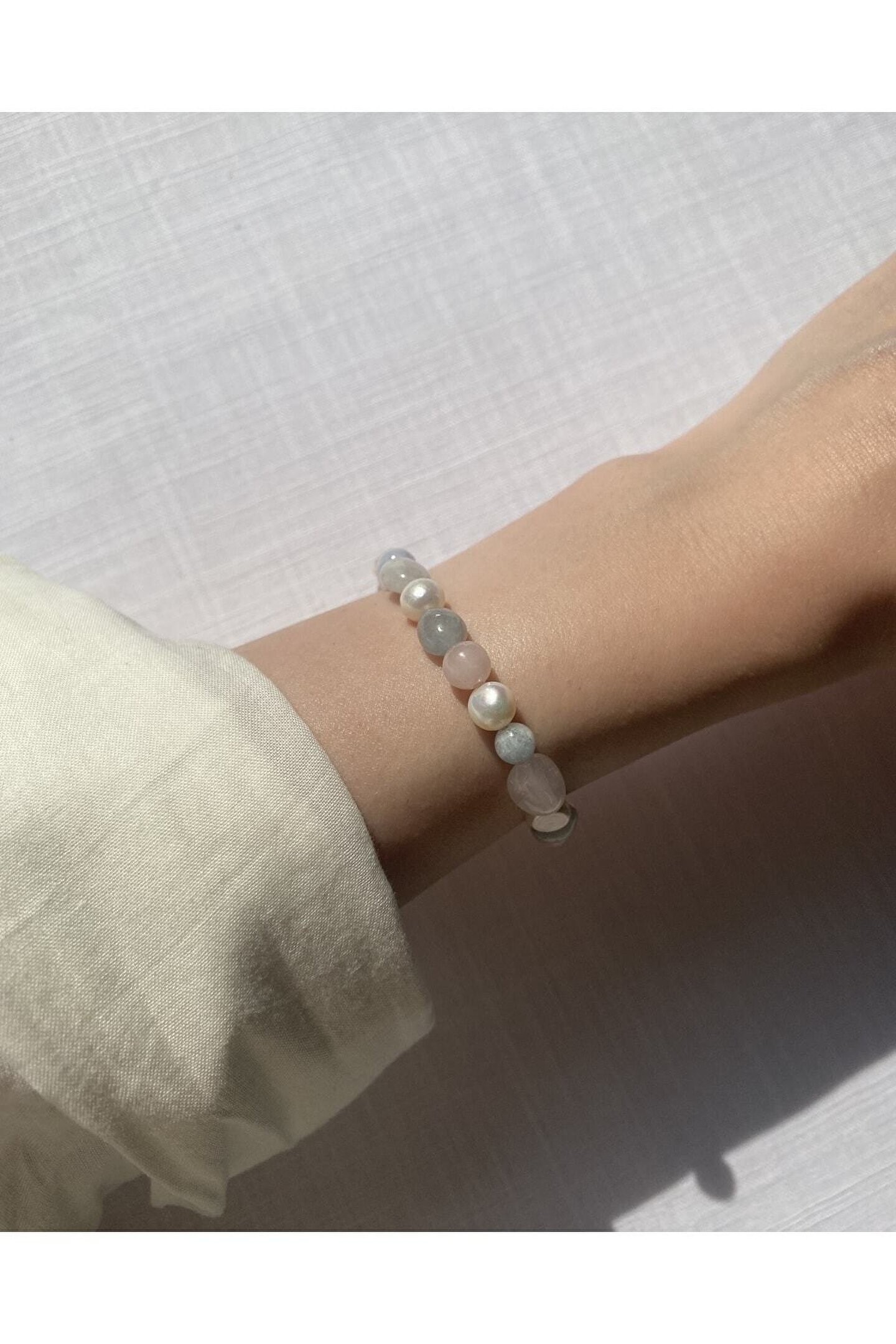 - Gerçek inci taşı ile tasarlanmış, zarif ve şık bir aksesuar; - Akuamarin taşının eşlik ettiği bu bileklik, hem göz alıcı hem de enerjik bir görünüm sunar; - Tatlı su incisi materyali sayesinde uzun ömürlü kullanım ve parlak bir parlaklık sağlar; - Pembe kuvars taşı ile zenginleştirilmiş bu bileklik, feminen ve zarif bir stil vurgusu yapar;