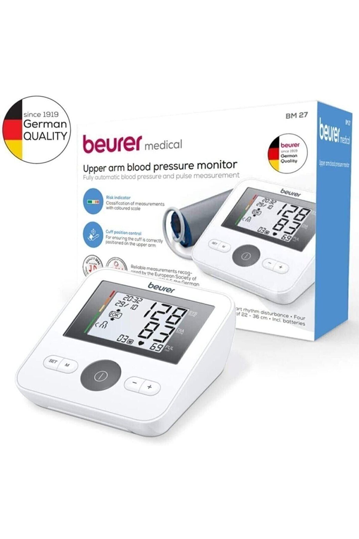 Bm27 Tansiyon Aleti Beurer BM 27 Tam Otomatik Koldan Ölçer Tansiyon Aleti ÖZELLİKLER Tam otomatik tansiyon ve nabız ölçümü.; ; Üst koldan ölçüm yapar.; ; Ortalama hesaplama özelliği.; ; Otomatik kapanma.; ; 4 x30 hafızaya keydetme özelliği.; ; Çarpıntı, ritm bozukluğu algılama.; ; 22 - 42 cm Medium ve Large boy kol manşeti.; ; Tarih ve zaman.; ; Geniş, kolay kullanılabilir LCD gösterge ve düğmeler.; ; Pil değiştirme göstergesi.; ; 4 adet 1,5 voltluk AA pille çalışır.; ; 2 Yıl Garantili Yeni Ürün.;