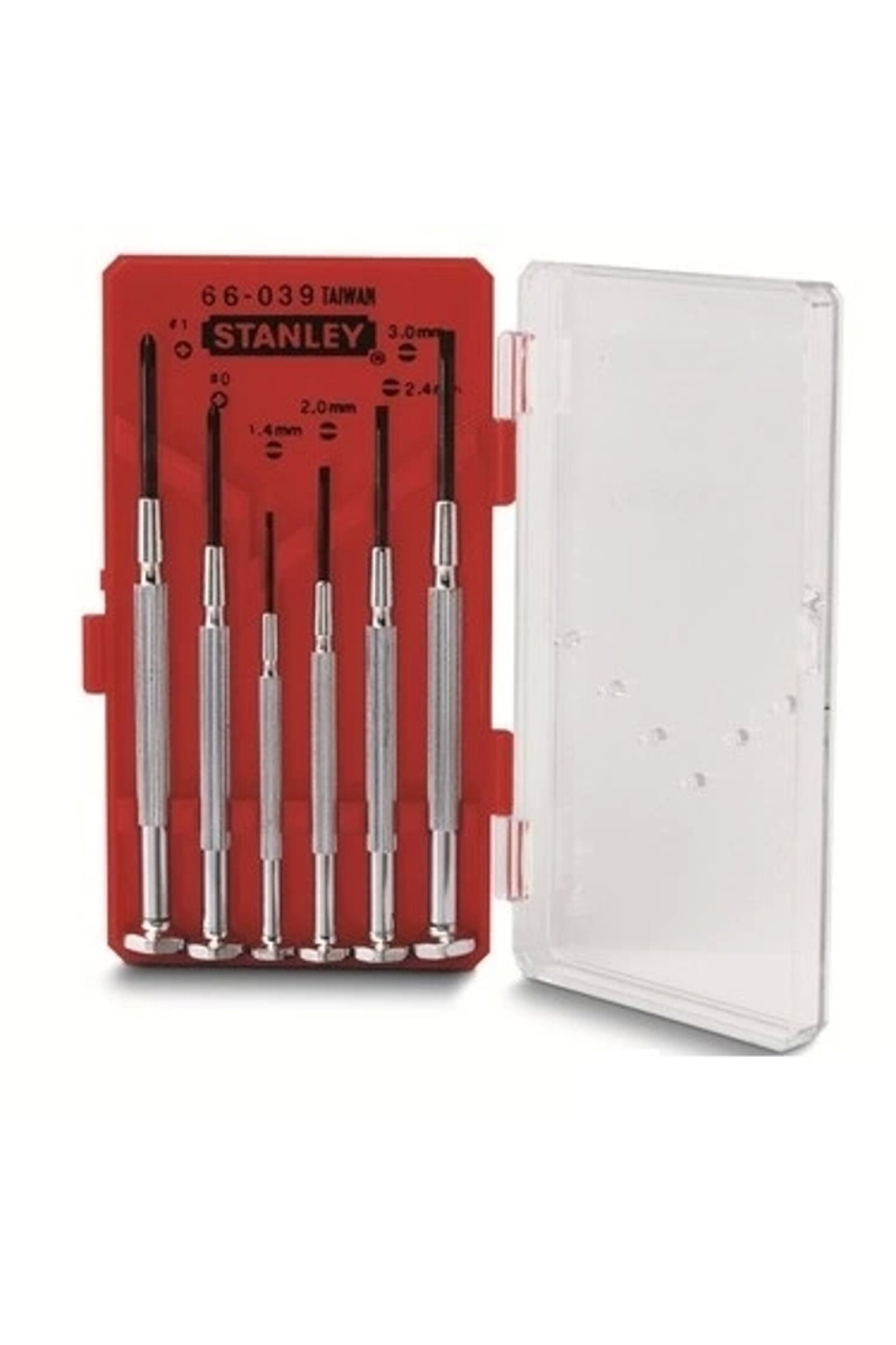 Stanley ST166039 6 Parça Saatçi Tornavida Seti Philips 1,4mm, 2mm, 2,4mm, 3mm Pozidriv PZ0, PZ1 Yüksek tork sağlayan krom vanadyum çeliği Ürünlerin kolay bulunması için plastik saklama kutusu Döner kafa mükemmel kavrama sağlar ve yorulmayı azaltır Tüm elektronik cihaz tamirlerin için idealdir