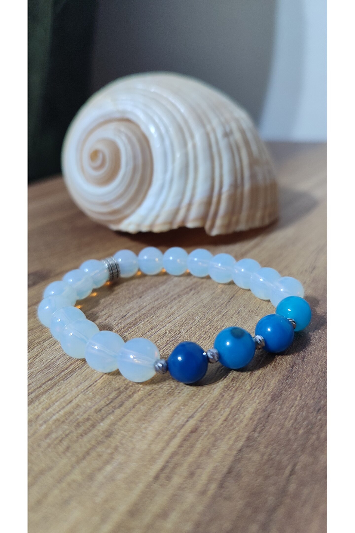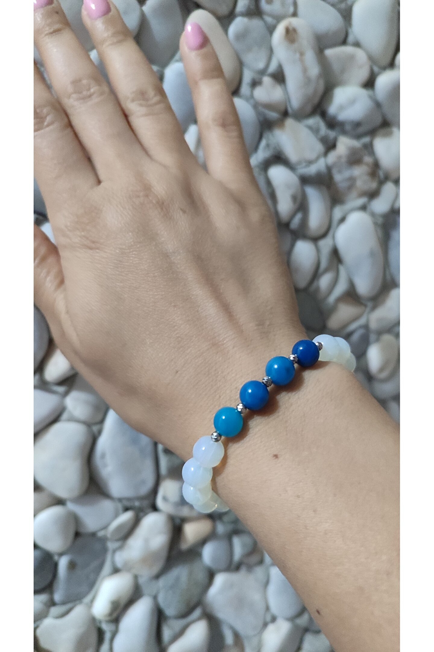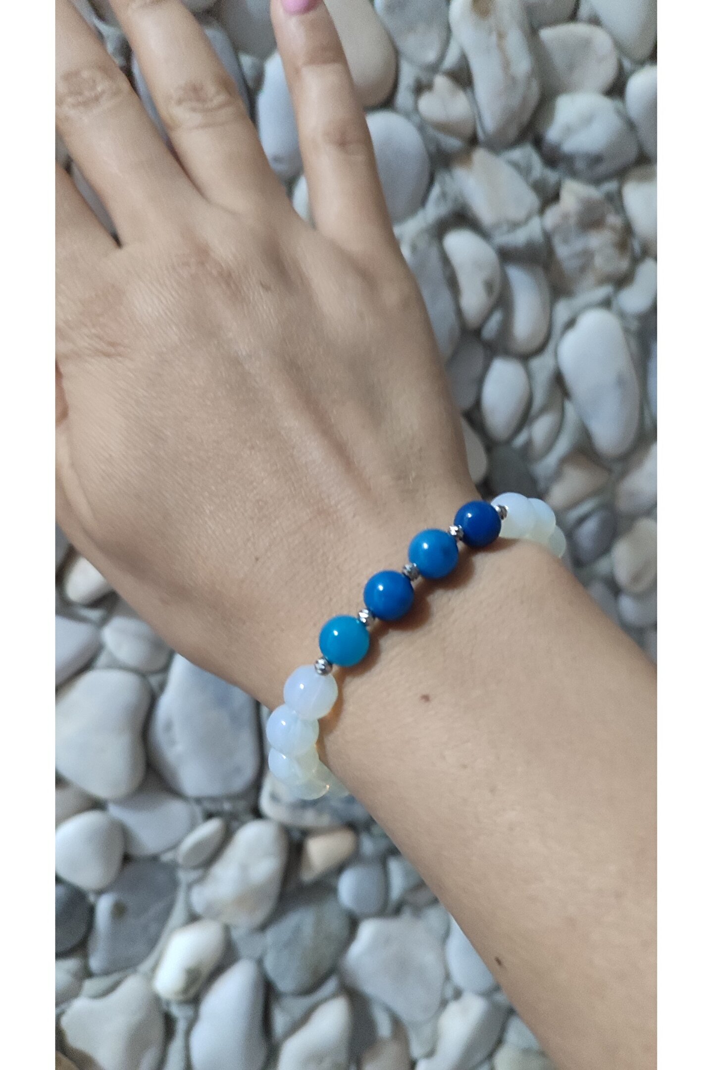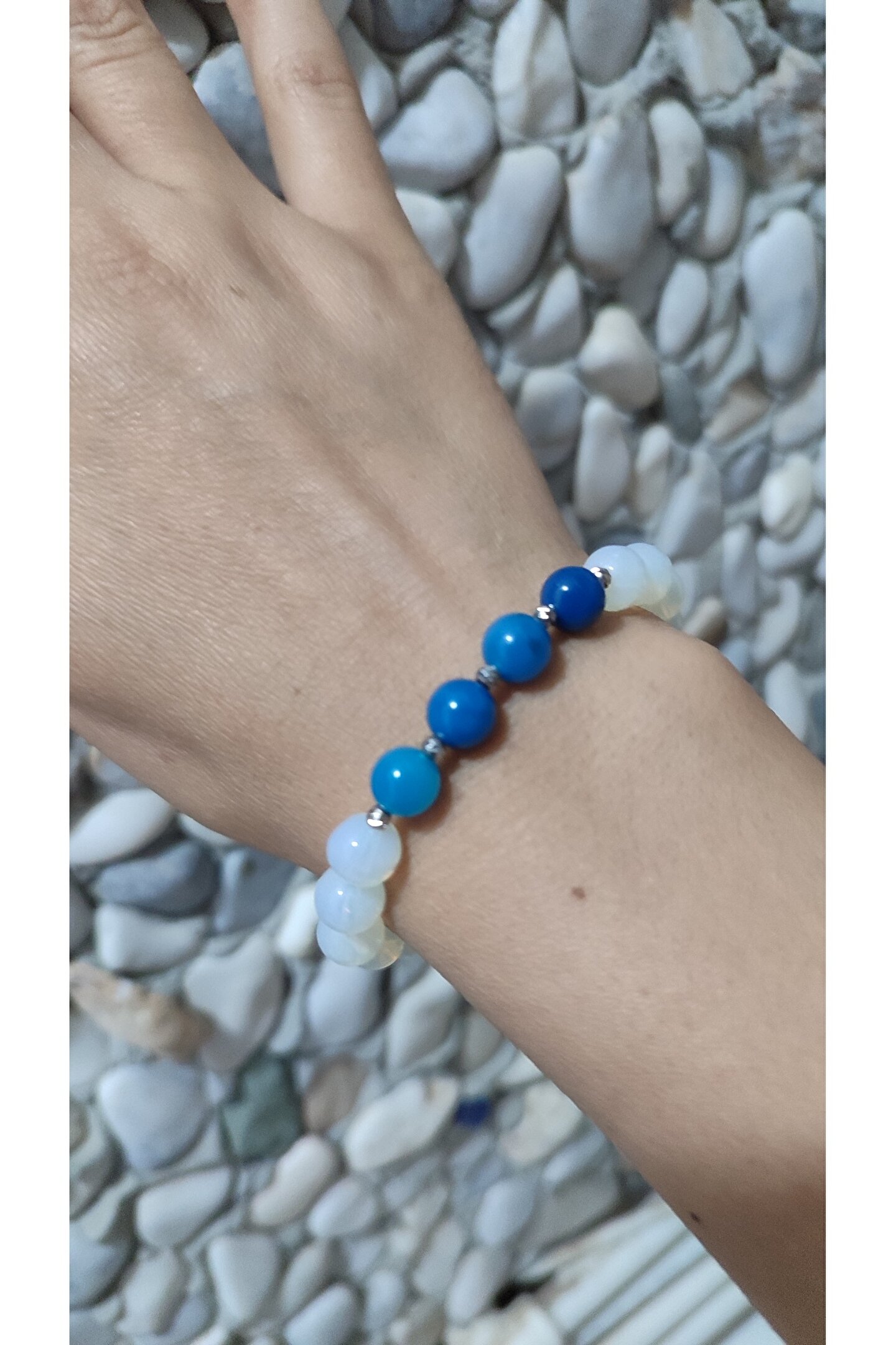 Doğal taş kullanımı sayesinde her bileklik benzersiz ve otantik bir görünüm sunar; Aytaşı mavi akik taşı, zarif ve şık tasarımıyla dikkat çeker; Hem kadınlar hem de erkekler için uygun, modern ve zamansız bir aksesuar seçeneği sunar; Doğal taş bileklik, günlük kullanım için idealdir ve her türlü kıyafetle kolayca uyum sağlar;