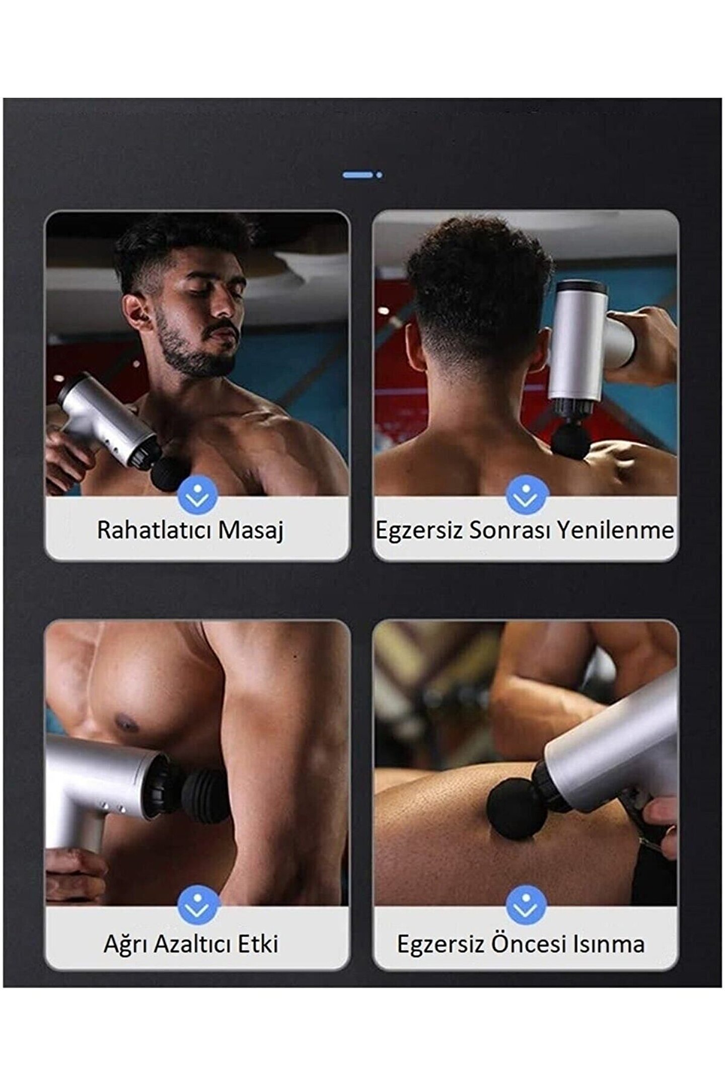 Starmax Masaj Tabancası Sporcu Masaj Aleti 4 Başlıklı Şarjlı