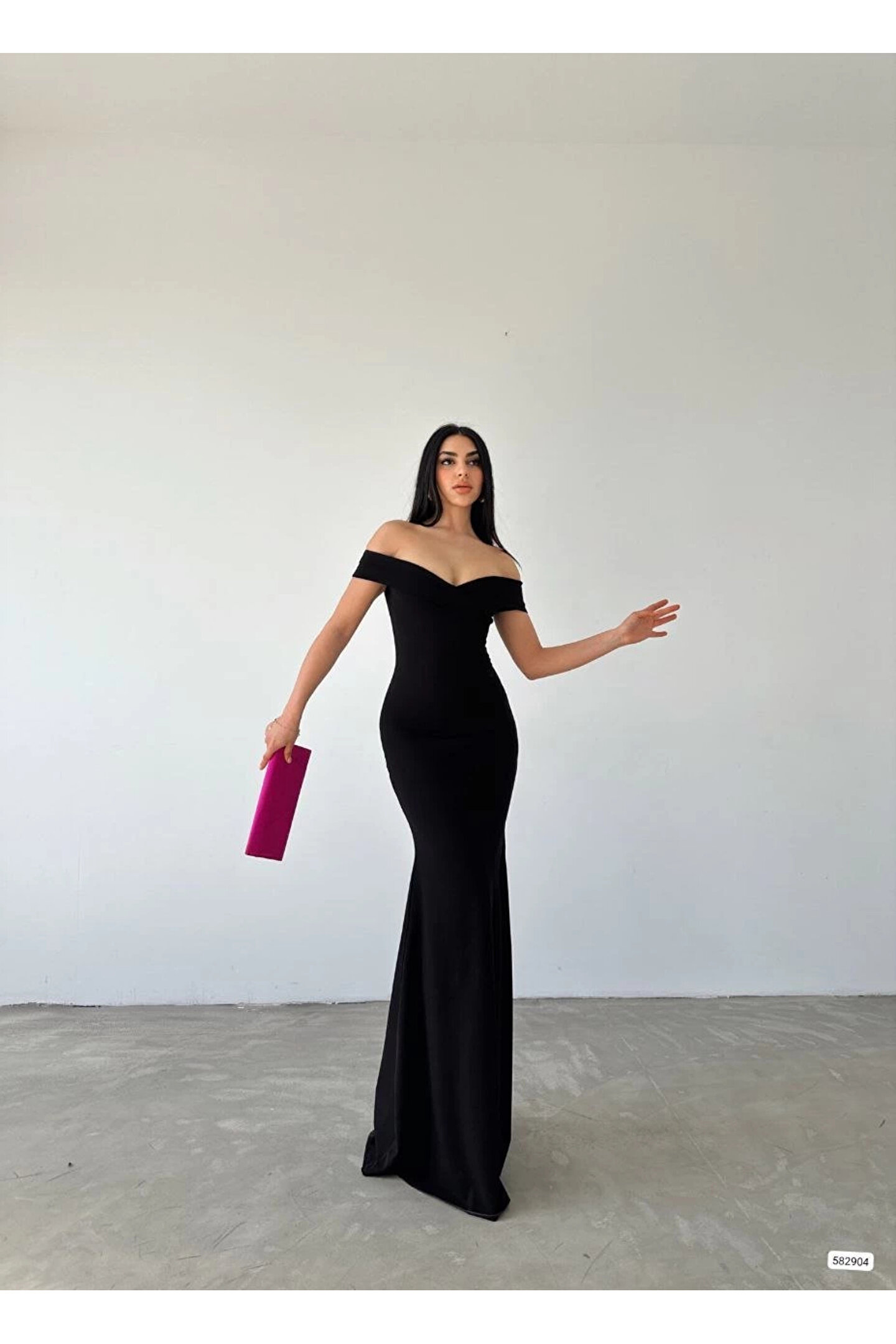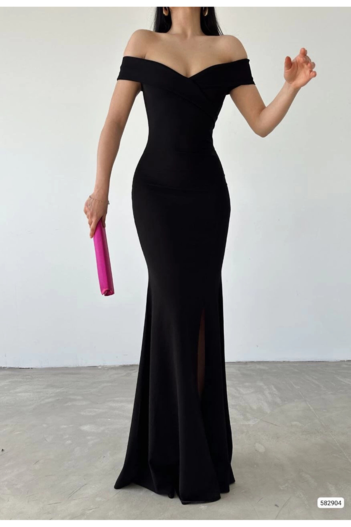 Kadın Dalgıç Kumaş Kayık Yaka Ve Dekolte Detaylı Elbise
