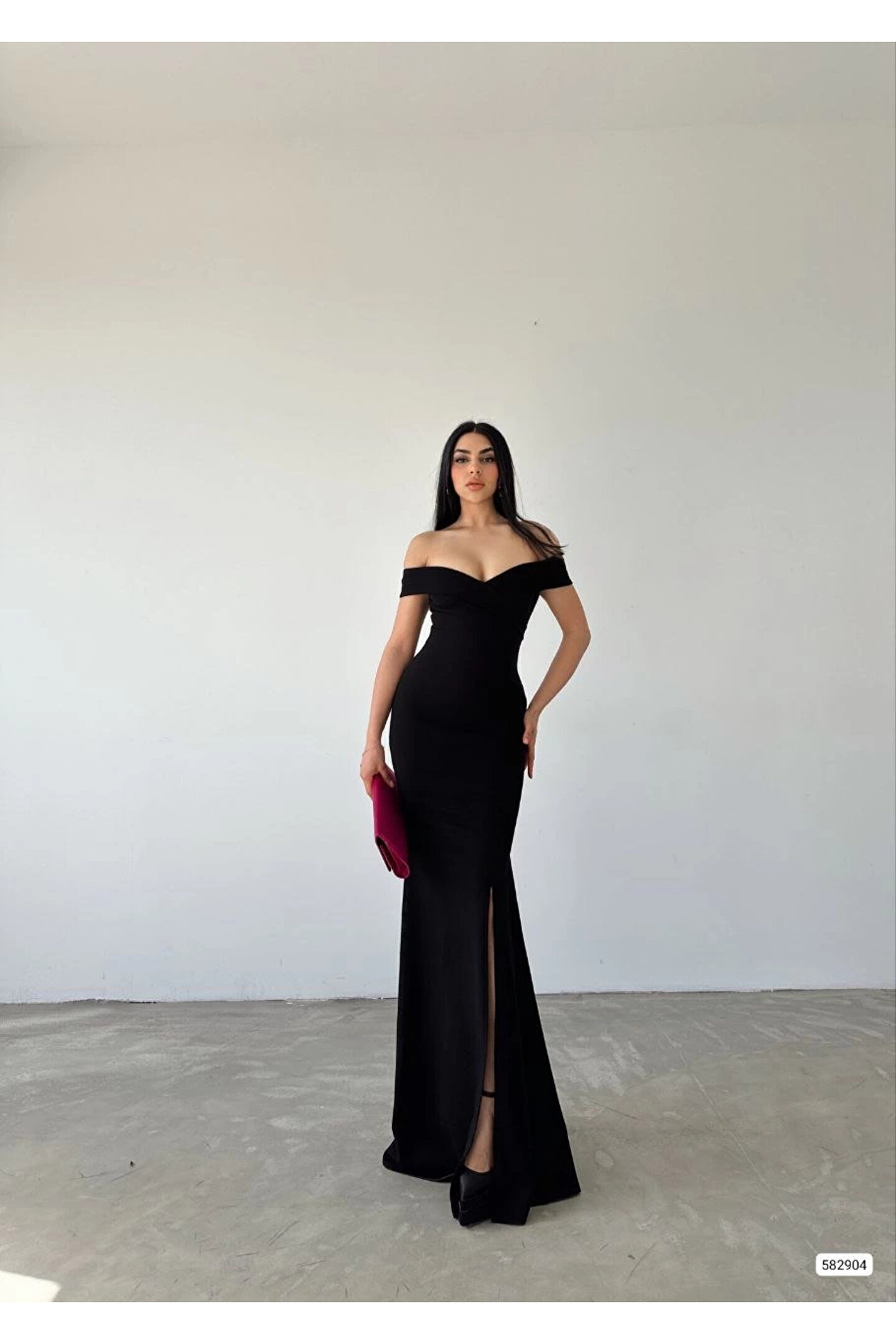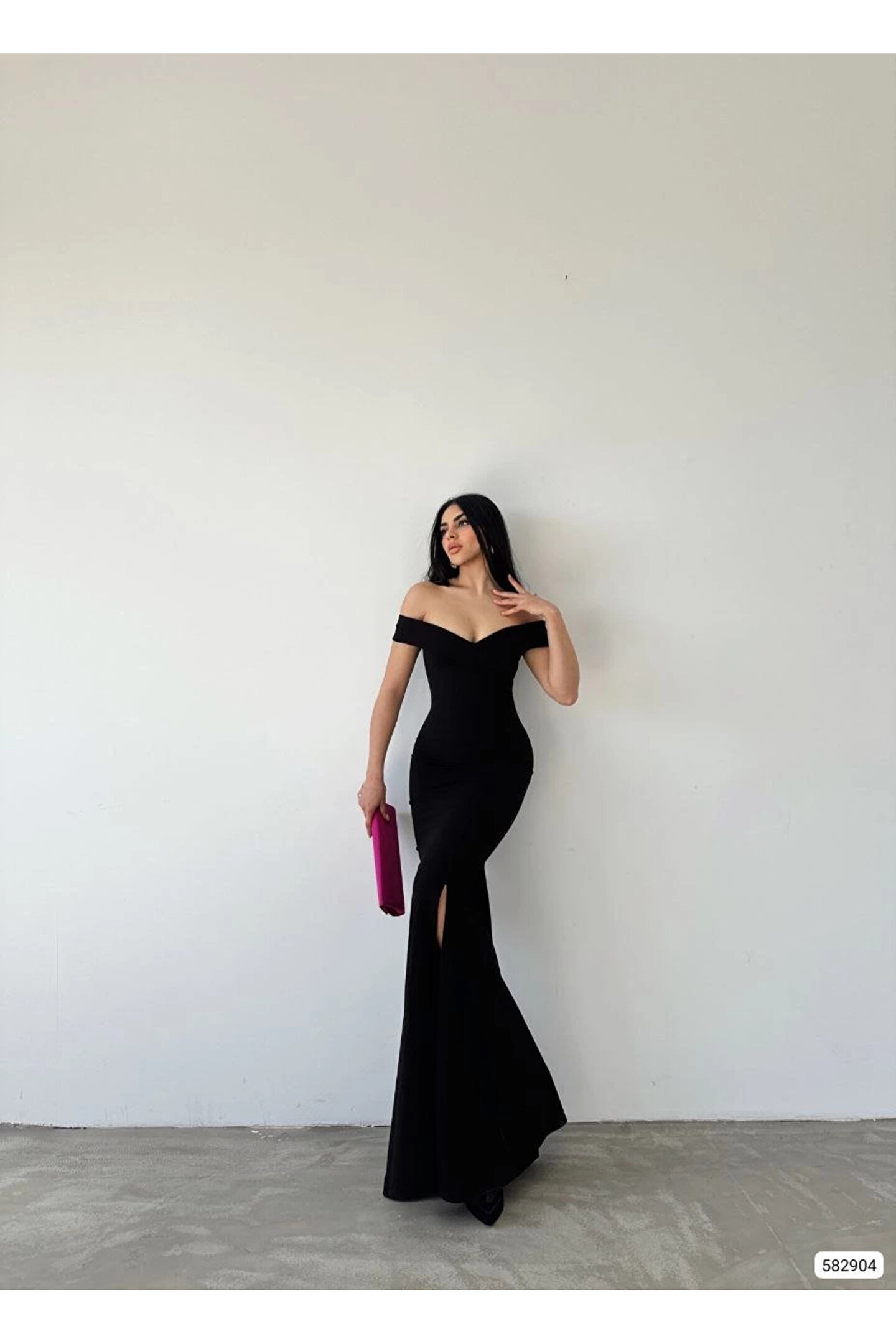 stelol Kadın Dalgıç Kumaş Kayık Yaka Ve Dekolte Detaylı Elbise