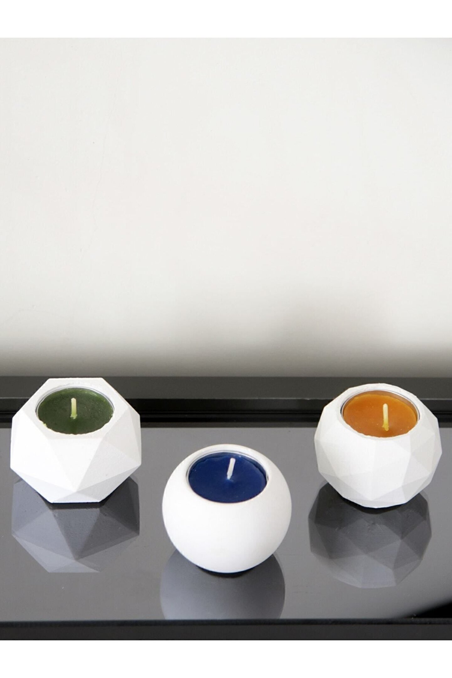 stonnish Tealight Beton Mumluk 3 Lü Set, Dekoratif Hediyelik Ham Beyaz 5 X 7 Cm