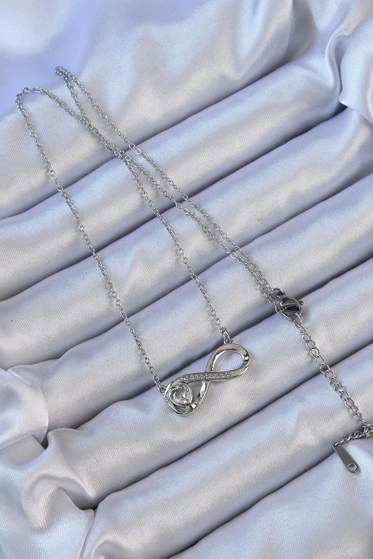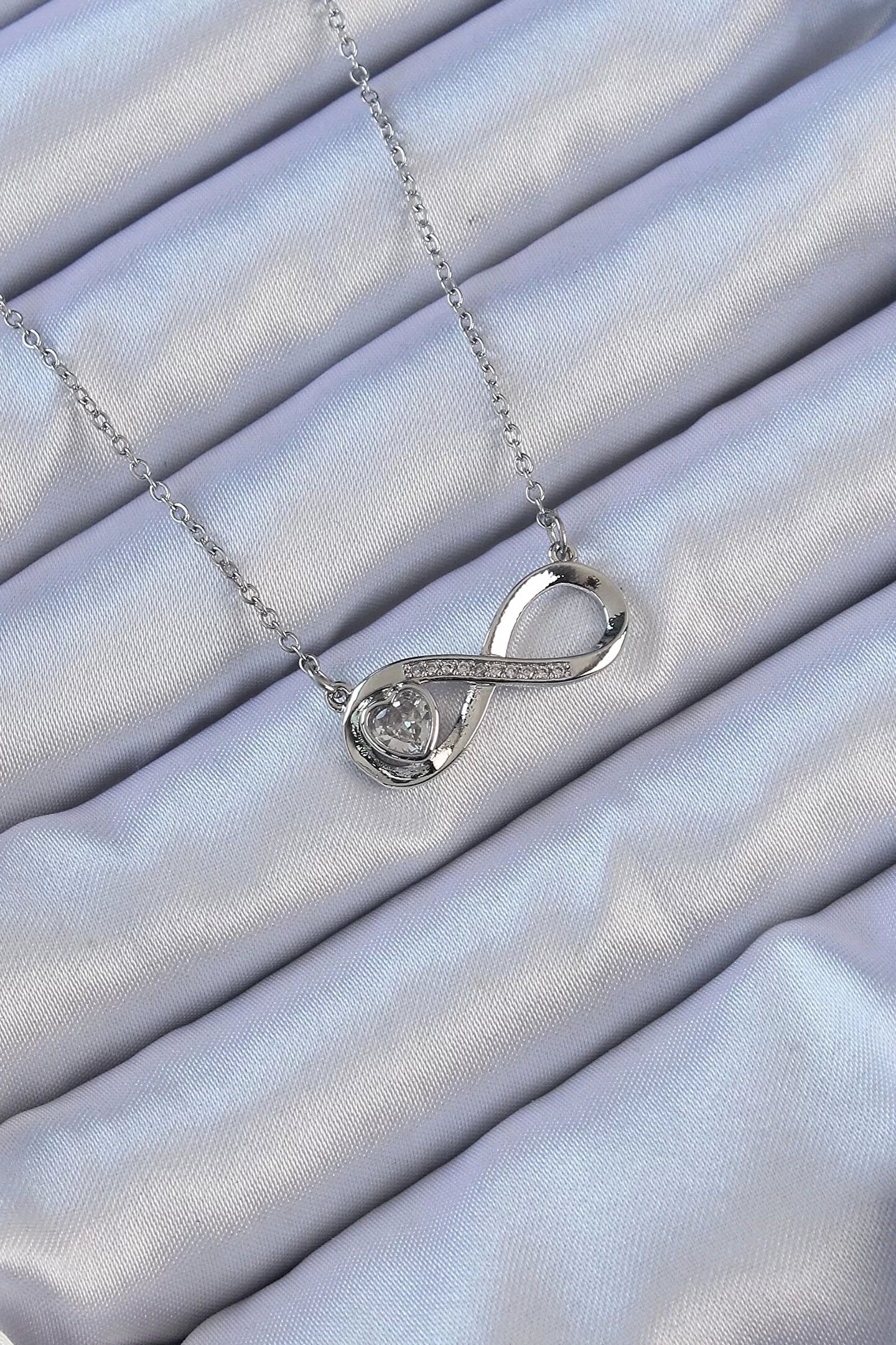 Store 316L Çelik Zincir Gümüş Renk Zirkon Taşlı Minimal Kalp Figür Sonsuzluk Kolye
