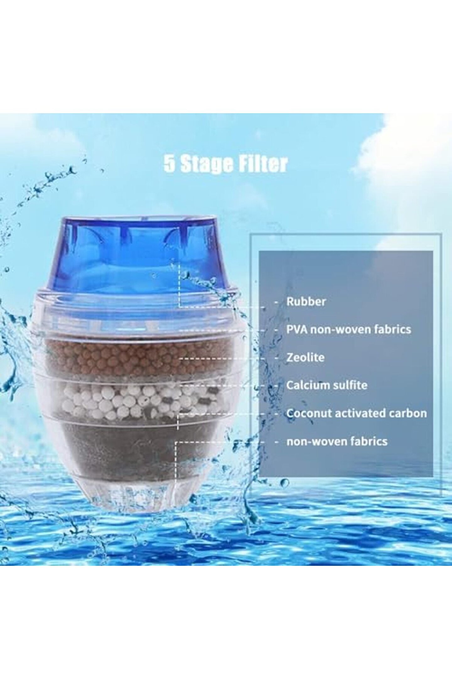 2 Adet 5 Katmanlı Aktif Karbon Su Arıtma Aparatı » 5 Katmanlı Aktif Karbon Su Arıtma Aparatı, aktif karbon filtrasyonu ve 5 katmanlı su temizleme filtresi ile evinizde sağlıklı suyun keyfini çıkarmanızı sağlar.; » Suyunuzu filtreleyin ve arındırın, ailenize en iyi ve sağlıklı suyu verin.; Sunup 5 Katmanlı Aktif Karbon Su Arıtma Aparatı ile anında harika arıtılmış su üretebilir ve en iyi tadım kahve ve çay yapmanıza yardımcı olabilir.; » Malzeme: Aktif karbon, kalsiyum sülfit, zeolit, PVA nonwovens » Boyut: Musluğun çapı 21-23mm veya 16-19mm için uygundur » Renk: Mavi, kırmızı, yeşil » Uygulama: Musluğu temizleyin ve esnek poşetlere doğrudan zorla » Su Kalitesi Gereksinimleri: Belediye suyu » Su Arıtma Makinesi Tipi: Ön filtre » Tip: Aktif karbon » Fonksiyon: Filtre » İpucu: Lütfen uzun süre sıcak su altında kullanmaktan kaçının.; 50 °C'nin altında tavsiye edilir.; İlk kullanımda siyah suyu göreceksiniz çünkü karbon, 5-10 saniye sonra iyi çalışabilir.; Yaşam Süresi: Su kalitesine göre, her gün kullanım için normalde 1-2 ay.; 2 Adet 5 Katmanlı Aktif Karbon Su Arıtma Aparatı, aktif karbon filtrasyonu ve su temizleme filtresi, Musluk Başlığı