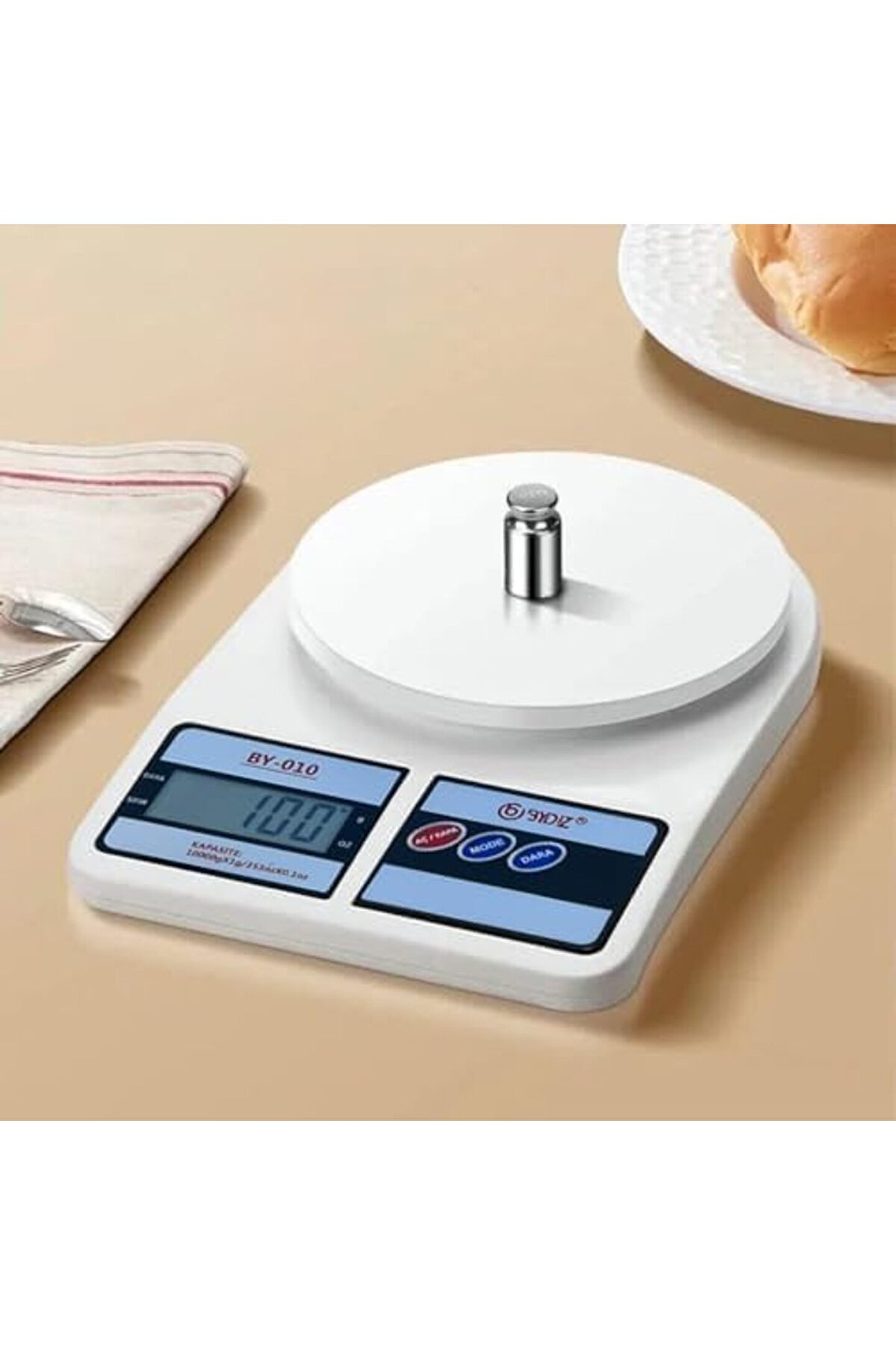 Hassas Tartım: 10 kg kapasiteli dijital terazi, 1 gram hassasiyetle pürüzsüz ve doğru tartım sağlar.; Kompakt Tasarım: Küçük ve taşınabilir yapısıyla mutfak tezgahınızda az yer kaplar, kolayca saklanabilir.; Çok Fonksiyonlu: Gram, Oz, birimleri arasında geçiş yapabilir, sıvı ve katı maddeleri tartabilir.; Otomatik Kapanma: Pil ömrünü uzatmak için kullanılmadığında otomatik olarak kapanır.; Kolay Okunur Ekran: Büyük, ekran sayesinde ölçümler net bir şekilde görüntülenir.; Bydiz Terazi BY-010 Dijital Mutfak Terazisi - Mutfak Tartısı - Dara Alma Özellikli, LCD Ekran, Otomatik Kapanma Özelliği - 10 kg Kapasitesi 1 Gr Hassasiyetli Dijital Mutfak Tartısı