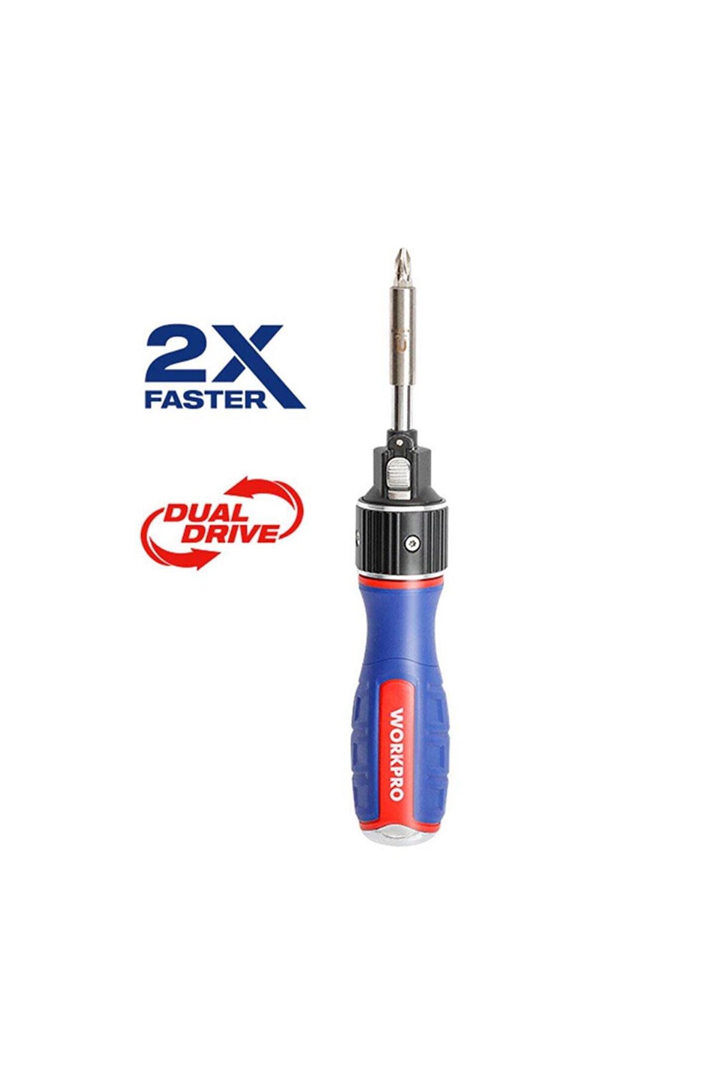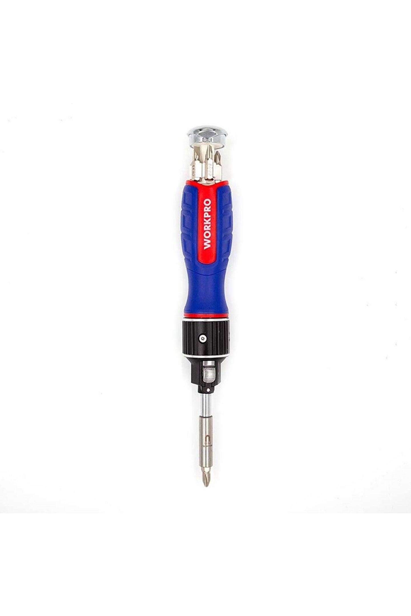 • WORKPRO WP221069 6-IN-1 Profesyonel CR-V Cırcırlı Manyetik Tornavida Seti • Mekanik veya elektrikli aletlerin, elektronik aletlerin bakım ve onarımında, profesyonel olarak kullanılabilmesi için paslanmaya ve aşınmaya dayanıklı Krom Vanadyum bits vidalama uçlarına sahiptir.; • Yenilikçi kalem tipi tasarımı ve tam otomatik DOUBLE DRIVE (İki kat daha fazla dönme hızı) cırcır mekanizmasıyla normal Cırcırlı tornavidalara göre bilek hareketinizin her iki yönüne çevrildiğinde vidalama yapabilir, bu sayede aynı yönde 2 kat daha hızlı vida sıkma veya sökme yapmanızı sağlar.; • DOUBLE DRIVE (İki kat daha fazla dönme hızı) cırcır mekanizması sayesinde her bir bilek hareketiniz ile aynı yöne döndürülmesini sağlarken sıradan cırcır tornavidalara göre 2 kat daha hızlı vidalama yapmanızı sağlar.; • Baş parmak hareketi ile vidalama yönünü sağa veya sola ayarlamanızı sağlar.; • Tornavida şaftının güçlü manyetik ucu, baş aşağı durumlarda bile vidanızı tutar.; Daha iyi kontrol sağlar.; • Geliştirilmiş dayanıklılık, paslanma direnci ve korozyon önleyici özellik için ısıl işlem görmüş CR-V çelikten yapılmış 6 Parça bits tornavida seti.; • Kalem tipi avuç içi kavrama, rahat ve ergonomik bir tutuş sunarak daha iyi kontrol sağlar ve uzun süreli kullanım sırasında el ve bilek yorgunluğunu azaltır.; • Cırcırlı mekanizma sayesinde hem sağ hem sol yönünde konforlu vidalama yapmanızı sağlar.; • Rahat kullanım için kaymayan, kolay kavranan tutma sapı sayesinde konforlu kullanım imkânı.; • Metal kaplama tutma sapı içine yerleştirilebilen bits uçlar sayesinde aksesuarlara hızlı erişim sağlanır.; • Üst düzey kauçuk kaplama sap tasarımı kaymayı önler, el yorgunluğunu azaltır.; • Yüksek kaliteli CR-V çelik kullanılmıştır, hassas ve ısıl işlemden sonra vidalama uçları daha sert ve dayanıklı hale getirilmiştir.; • Paslanmaya ve korozyona karşı dayanıklı krom kaplı CR-V cırcır mekanizması.; • İÇERİK: SL 3mm, 5mm, 6mm Düz Bits Vidalama Uçları • PH1, PH2, PH3 Yıldız Bits Vidalama Uçları • Cırcırlı Vidalama Kolu • WORKPRO, Amerika Birleşik Devletleri menşeli profesyonel bir El Aleti markası olup 1992 yılında kurulmuştur.; • WORKPRO, Dünyanın en büyük El Aleti üreticisidir ve Mekanik El Aletleri alanında dünya çapında 21 üretim üssüne sahiptir.; • WORKPRO, Dünya genelinde 5 AR-GE üssü ve inovasyon teknoloji merkezleri sayesinde, her yıl 400'den fazla yeni ürün geliştirmektedir.; Sektöründe 700'den fazla uluslararası patentin de sahibidir.; • WORKPRO, Sadece profesyonel değil, aynı zamanda Rekabetçi Fiyat, Yüksek Kalite ve Geniş Ürün Çeşidiyle Dünya çapında 100’den fazla ülkede hizmet vermektedir.