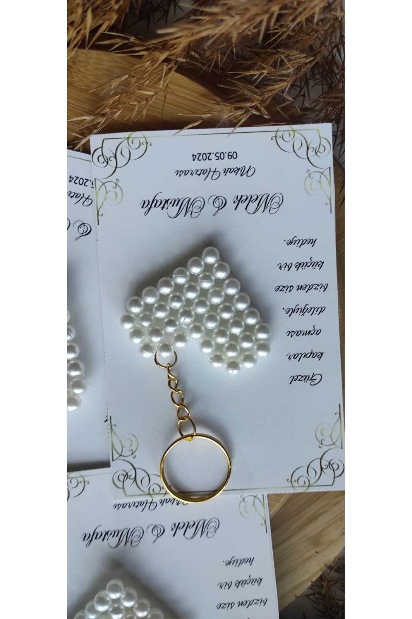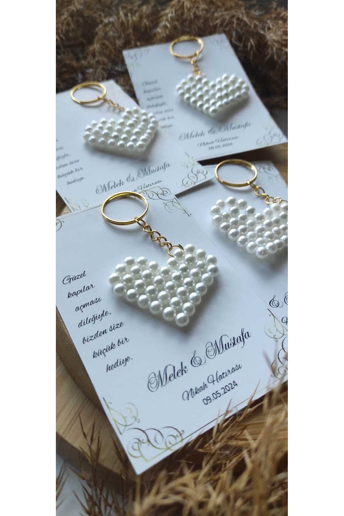 Stories Birgülce Incili Kalp Hediyelik Anahtarlık 10 Adet Söz-nişan-nikah-mevlüt- Özel Tasarım Hatıra