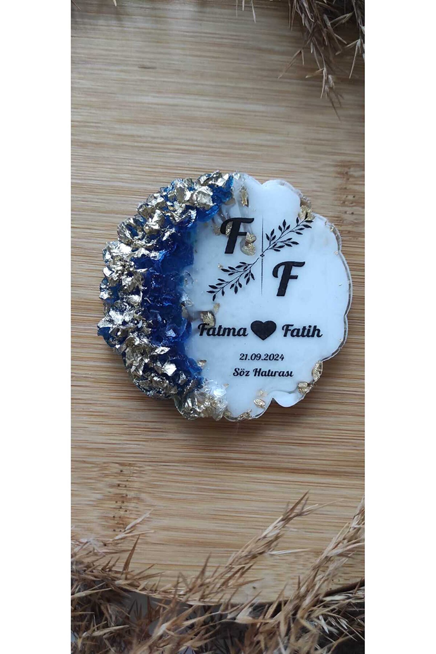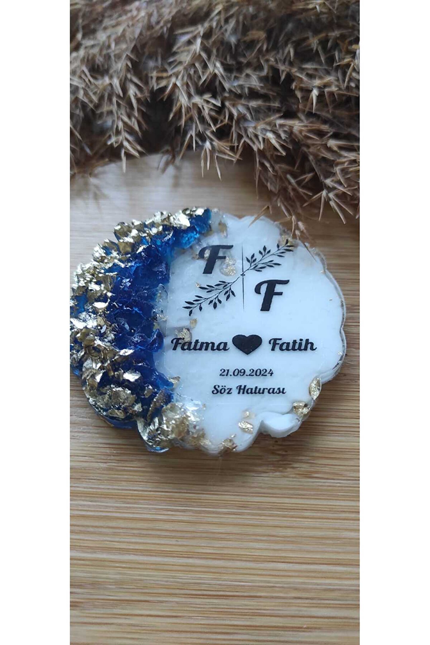 10 Adet ; Epoksi mavi/gold rengi kabartma taşlı detaylı magnet ; Kişiye özel tasarım kaliteli baskı hatıra magneti ; Her ürün tek tek jelatinlenerek gönderilecektir ; Alıcının siparişi oluşturduktan sonra 24 saat içinde sipariş numarası özel not-isim-tarih gibi taleplerini satıcıya iletmelidir, aksi durumda magnetlerde baskısız gönderim yapılacaktır ;
