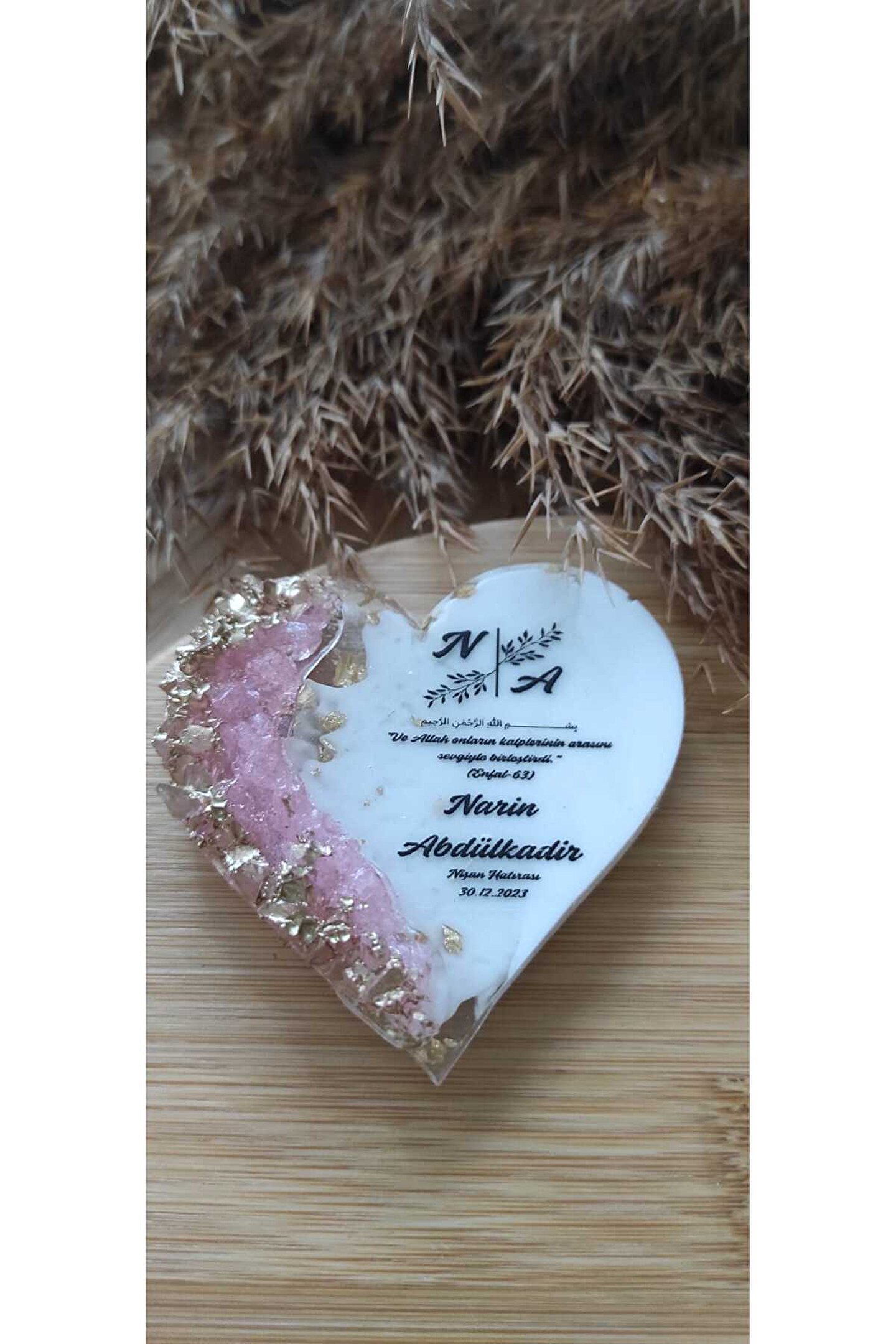 10 Adet ; Epoksi pembe/gold kalp detaylı magnet ; Kişiye özel tasarım kaliteli baskı hatıra magneti ; Her ürün tek tek jelatinlenerek gönderilecektir ; Alıcının siparişi oluşturduktan sonra 24 saat içinde sipariş numarası özel not-isim-tarih gibi taleplerini satıcıya iletmelidir, aksi durumda magnetlerde baskısız gönderim yapılacaktır ;