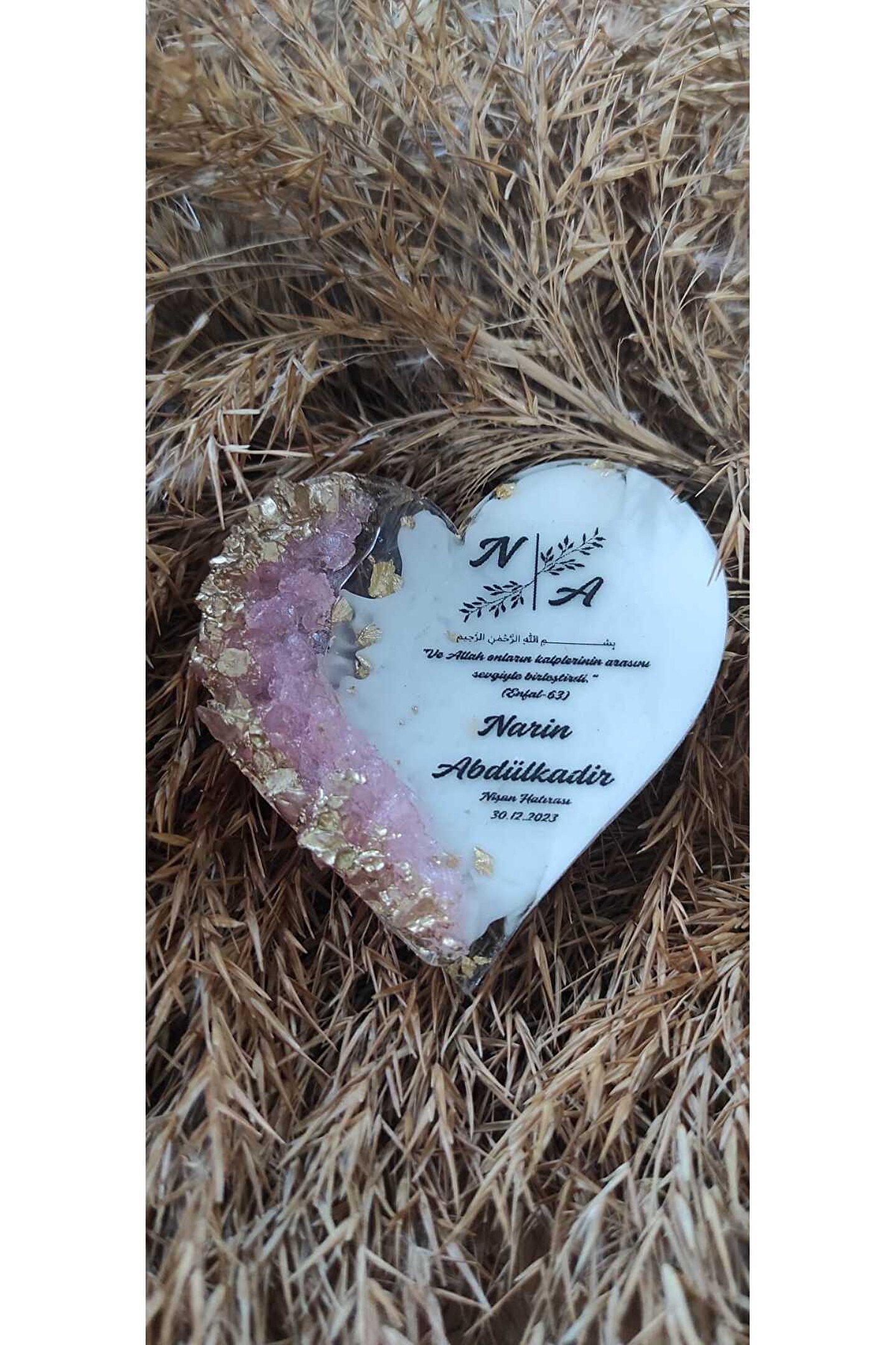 10 Adet ; Epoksi pembe/gold kalp detaylı magnet ; Kişiye özel tasarım kaliteli baskı hatıra magneti ; Her ürün tek tek jelatinlenerek gönderilecektir ; Alıcının siparişi oluşturduktan sonra 24 saat içinde sipariş numarası özel not-isim-tarih gibi taleplerini satıcıya iletmelidir, aksi durumda magnetlerde baskısız gönderim yapılacaktır ;