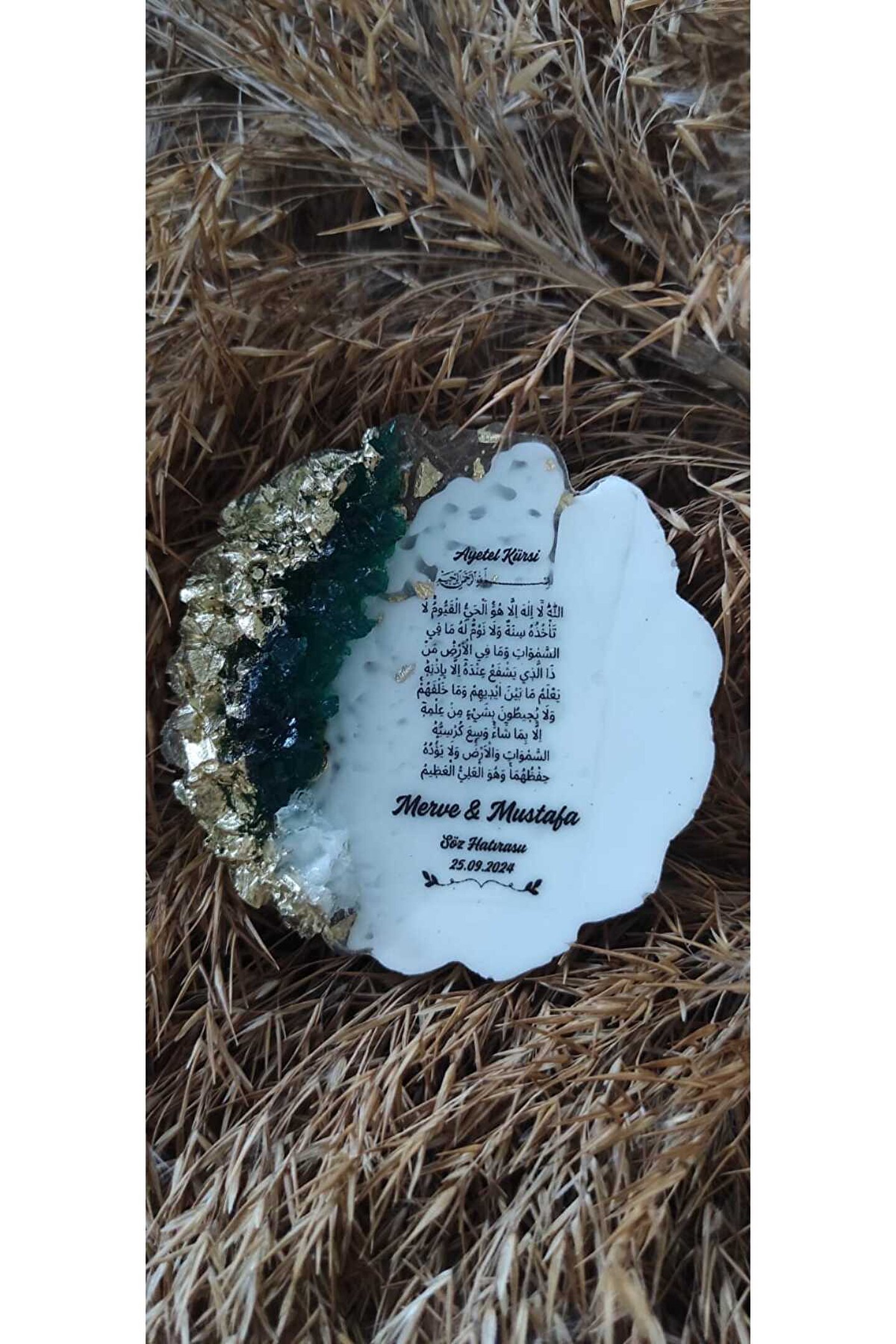 20 Adet ; Epoksi yeşil/gold rengi kabartma taş detaylı magnet ; Kişiye özel tasarım kaliteli Ayet-el Kürsi baskı hatıra magneti ; Her ürün tek tek jelatinlenerek gönderilecektir ; Alıcının siparişi oluşturduktan sonra 24 saat içinde sipariş numarası ile özel not-isim-tarih gibi taleplerini satıcıya sor kısmından iletmelidir, aksi durumda magnetler baskısız olarak gönderim yapılacaktır ;
