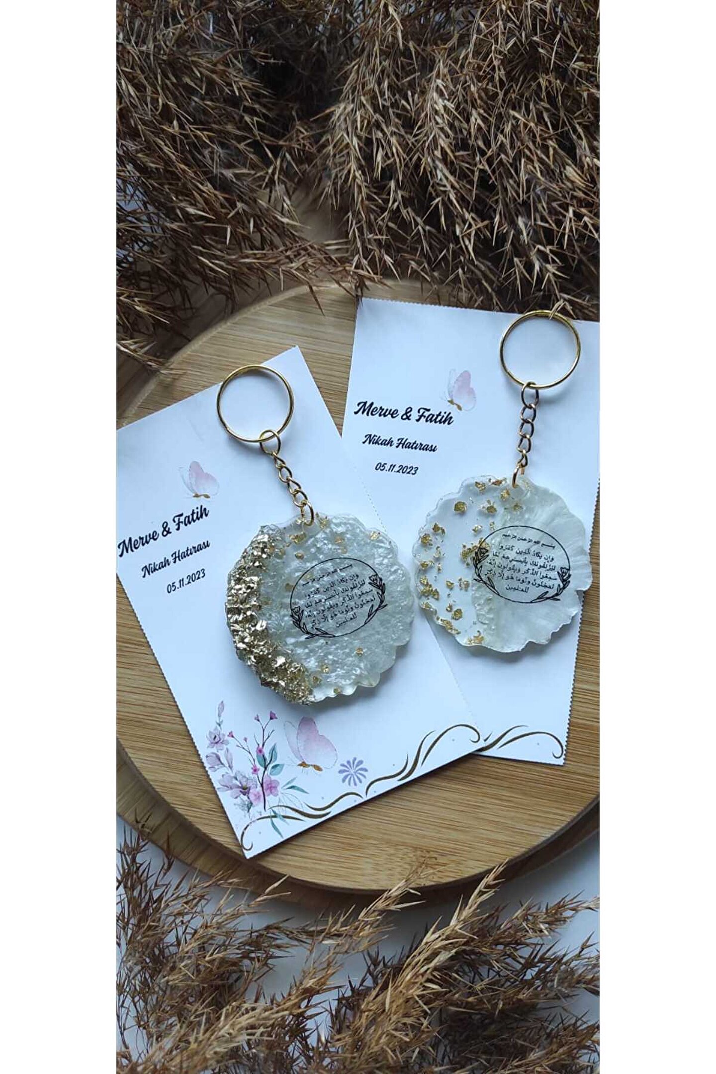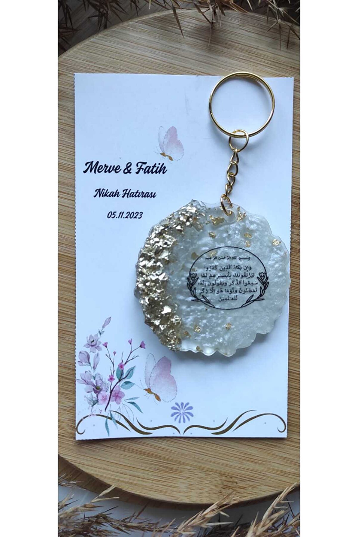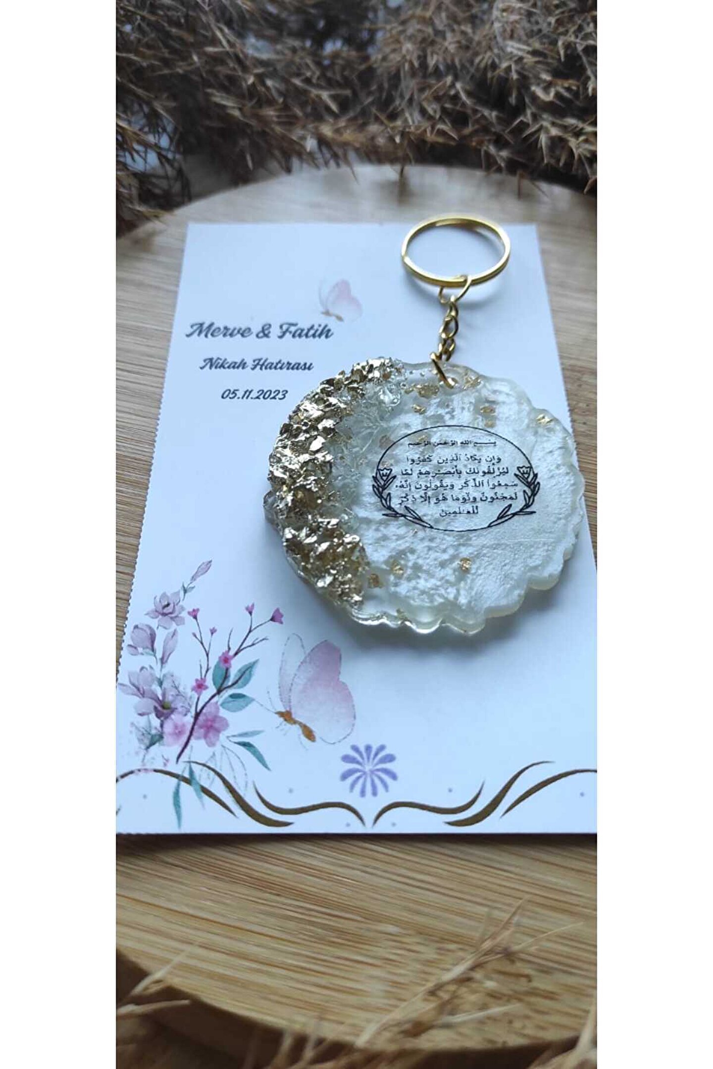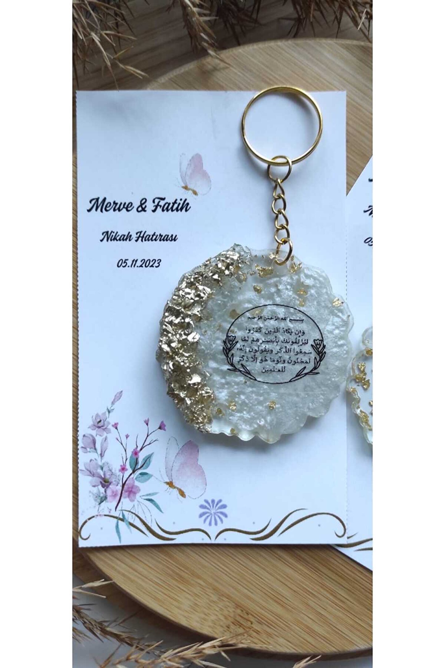 8 Adet ; Özel tasarım baskılı kartlı ; Özel Nazar Ayeti baskılı epoksi anahtarlık ; Ürünler tek tek jelatinlenerek gönderilmektedir ; Alıcının siparişini oluşturduktan sonra 24 saat içinde sipariş numarası ile birlikte isim-tarih-özel not gibi taleplerini satıcıya sor kısmından iletmesi gerekmtektedir.; Aksi durumda standart baskı ile gönderim yapılacaktır;