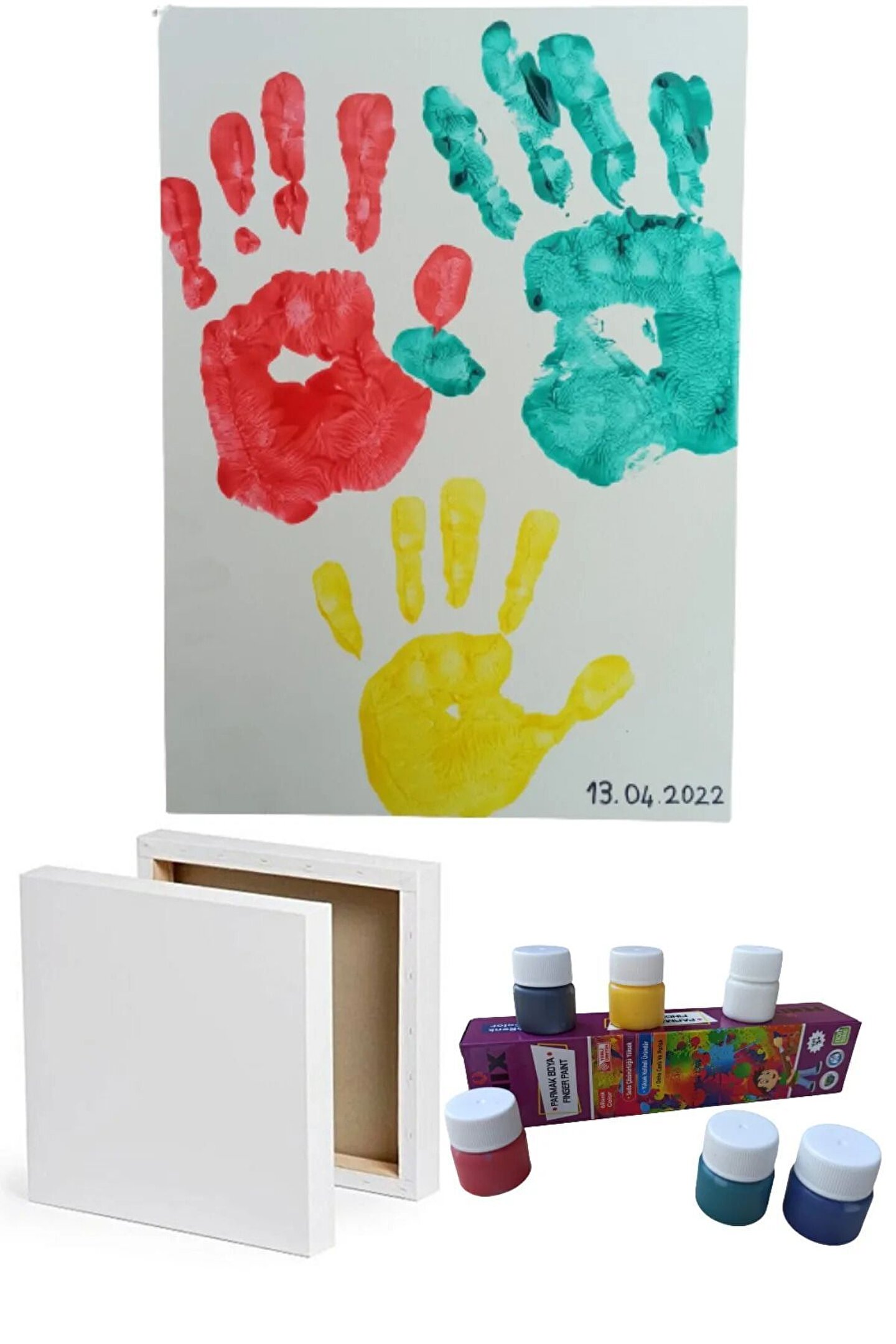 Südor Bebek El Ayak Izi Baskı Seti Hatıra Seti Hobi Tuval Parmak Boyası