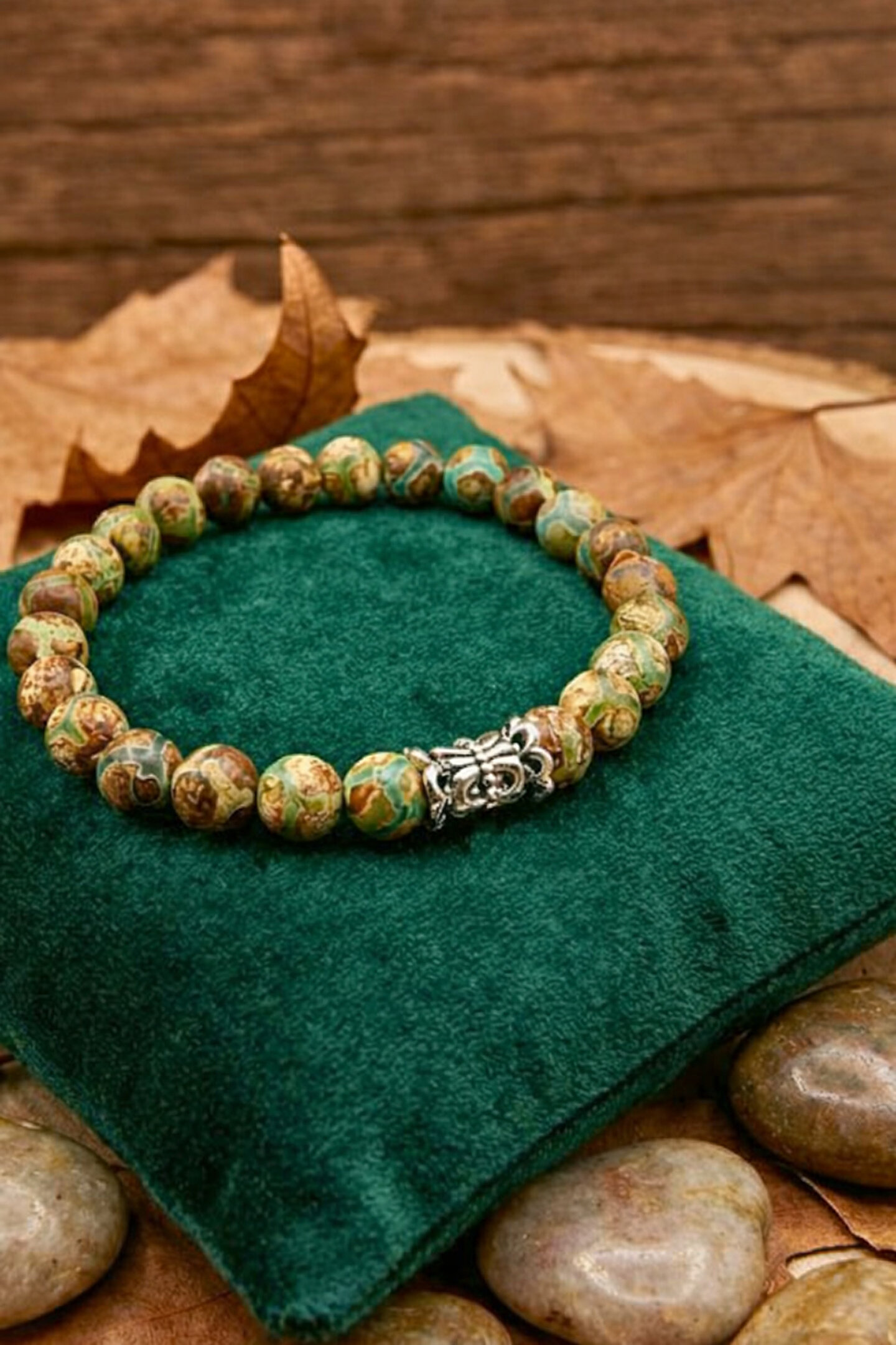 - Doğal Tibet akiği taşından üretilmiş, hem kadın hem erkeklerin rahatlıkla kullanabileceği unisex bir bilekliktir.; - Canlı yeşil rengiyle dikkat çeken bu bileklik, doğal taşın estetik güzelliğini yansıtır.; - Türkiye'de üretilmiş olup, yerel işçilik ve kaliteli malzemelerle öne çıkar.; - Bakımı kolaydır; nemli bir bezle silerek temizliği sağlanabilir.; - Standart bedeni sayesinde farklı bilek ölçülerine uyum sağlar ve rahat bir kullanım sunar.