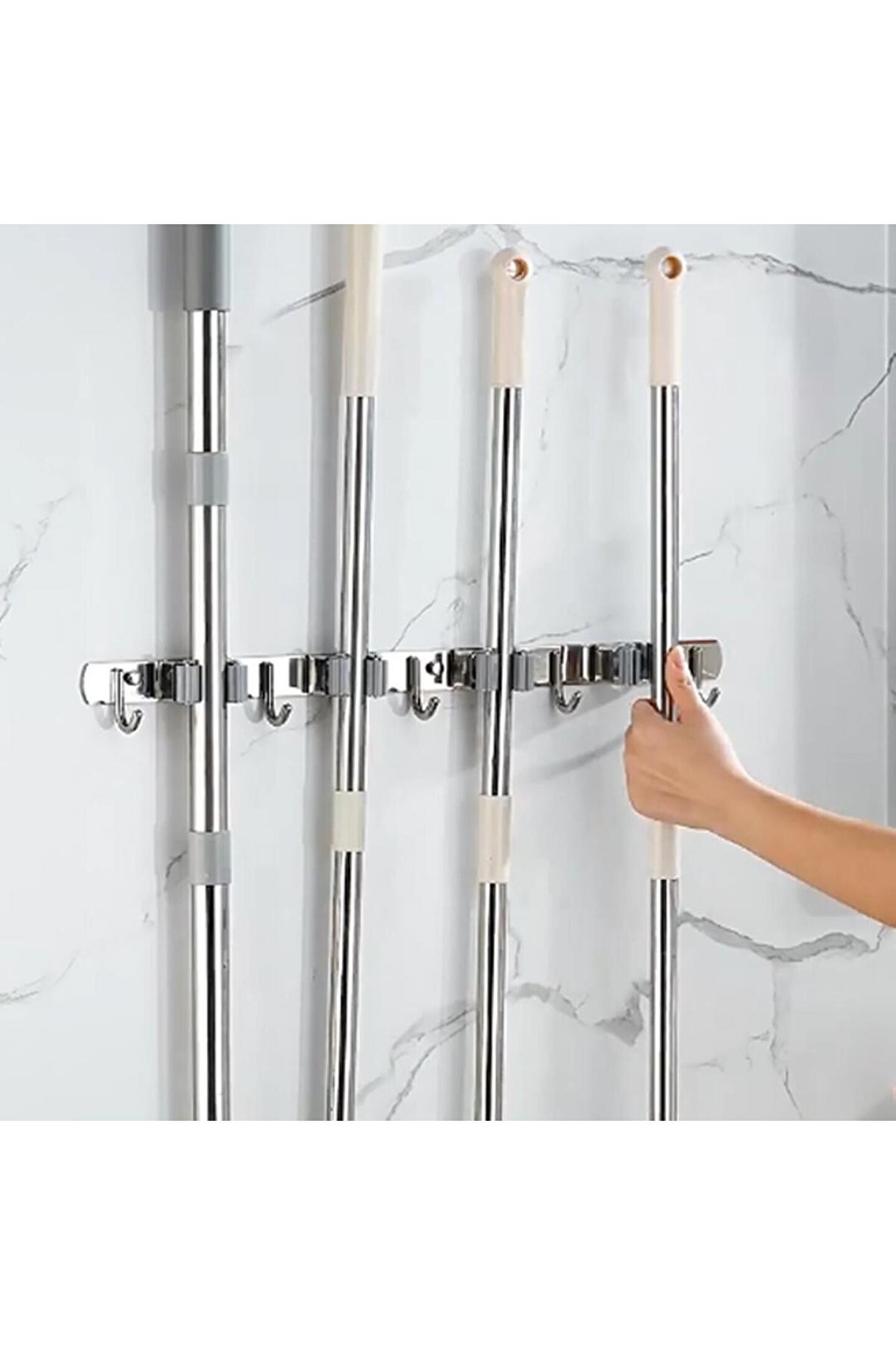 SUNUP SN-26351 Beş Kancalı Dört Klipsli Paspas-Süpürge Tutucu - Askılık