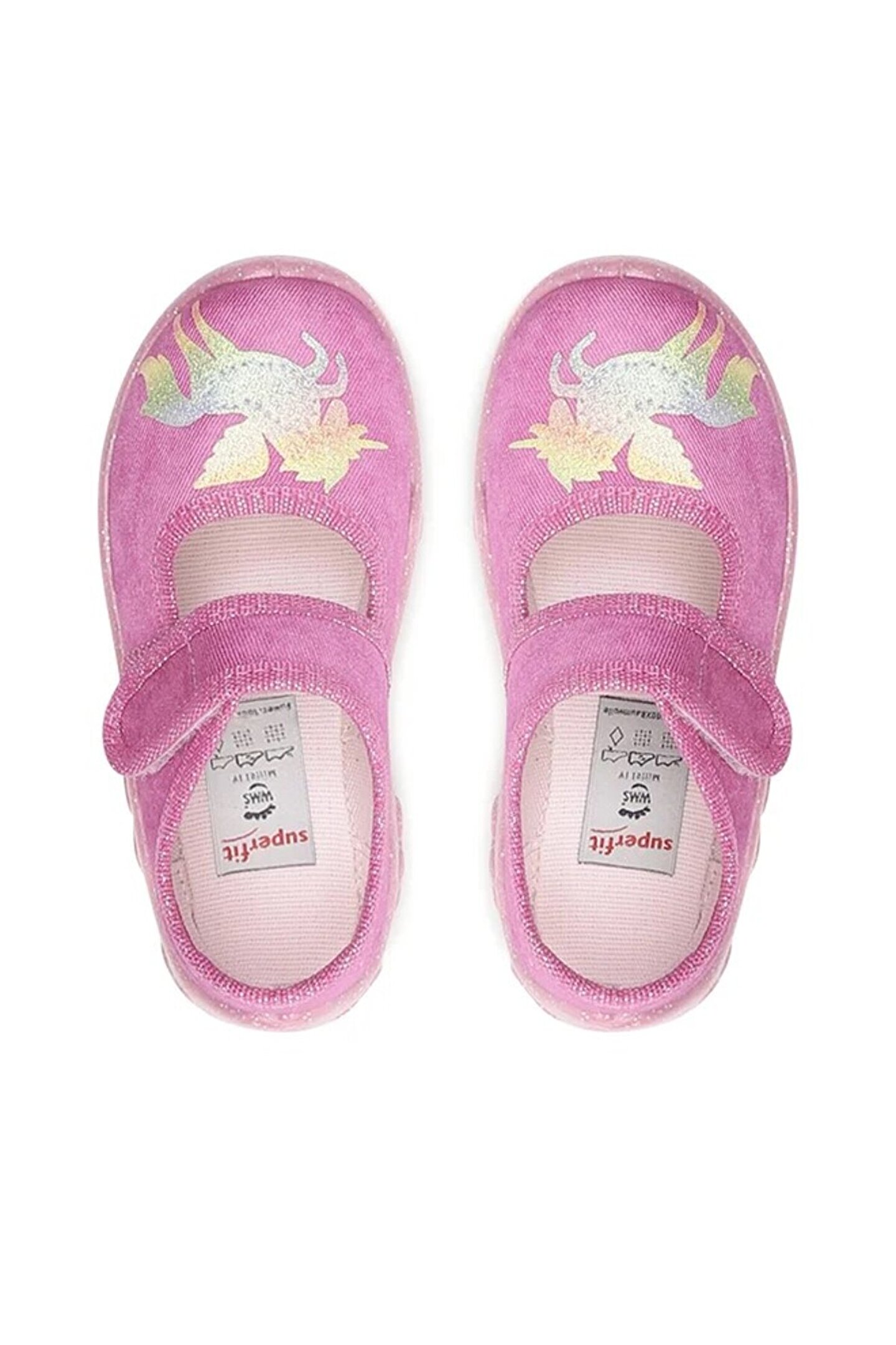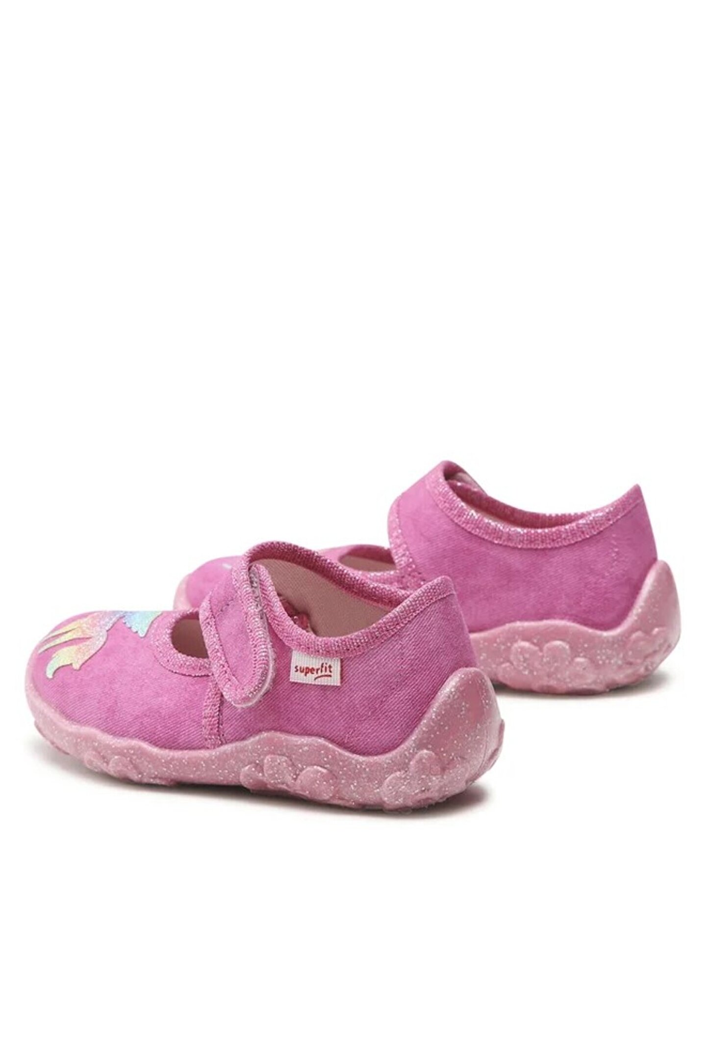 These BONNY vegan slippers inspire the imagination.; With its fairytale motif, the superfit model is simply enchanting.; The airy textile lining and the perforated sole ensure a great climate for the foot – whether at home, at kindergarten or at school.; Also good to know –BONNY’s sole with floral accents is light and flexible – so the foot can roll easily.; Colour name: Pink ; Type: Slipper ; Functions: Non-marking Sole ; Fastening type: Velcro Fastener ; Inner lining: Textile ; Insole material: Textile ; Upper materials: Textile ; Width: Medium ; Certificates: 100% Vegan Mark of Conformity ; Made in Europe: Made in Europe ; Motif: Unicorn ; Model: BONNY ;