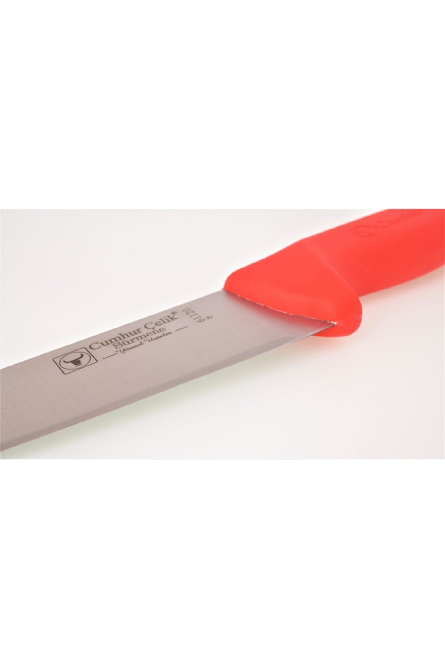 Cumhur çelik kaymaz saplı bıçaklar ile güvenli bıçak arayışına son veriyoruz. ; Sağlığa zarar vermeyen,elden kaymayan bıçaklar sayesinde et kesmek daha güvenli. ; Ağız boyu 16,5 cm, Kalınlığı 3 mm olup, T5 paslanmaz dövme çelikten imal edilmiştir. ; %100 yerli üretim. ; El yapımı marka tescilli profesyonel bıçaklarımız kullanım önerilerine uyulduğunda yüksek kaliteli ve uzun ömürlüdür. ; **kullanım önerileri** Elde yıkanması tavsiye edilir. ; Bıçak bileme aracının,bıçağın yapıldığı çelikten daha sert bir materyalden yapılmış olmasına mutlaka dikkat edilmelidir.;
