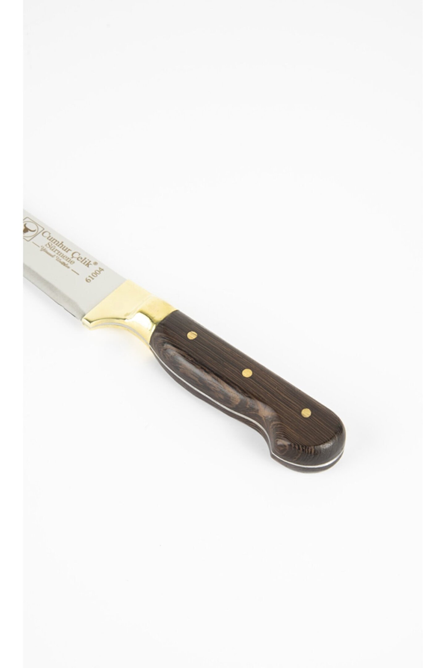 Cumhur çelik sürmene mutfak bıçağı ; Ağız boyu 16 cm. ; Kalınlığı 2,5 mm. ; T5 paslanmaz dövme çelikten imal edilmiştir. ; El yapımı tescilli markalı profesyonel bıçak. ;