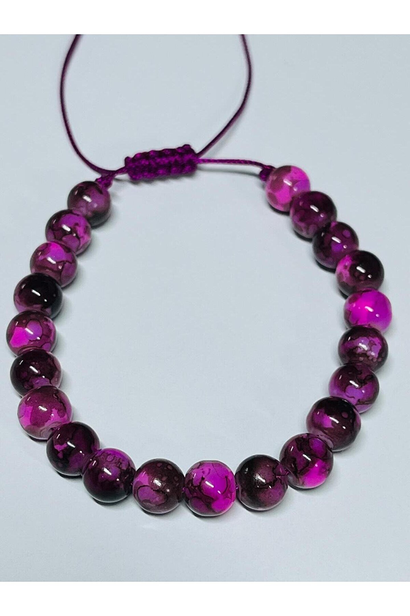 süslühome mürdüm doğal taşlı hediyelik unisex bileklik bileğe göre ayarlanabilir asansörlü zarif ve şık
