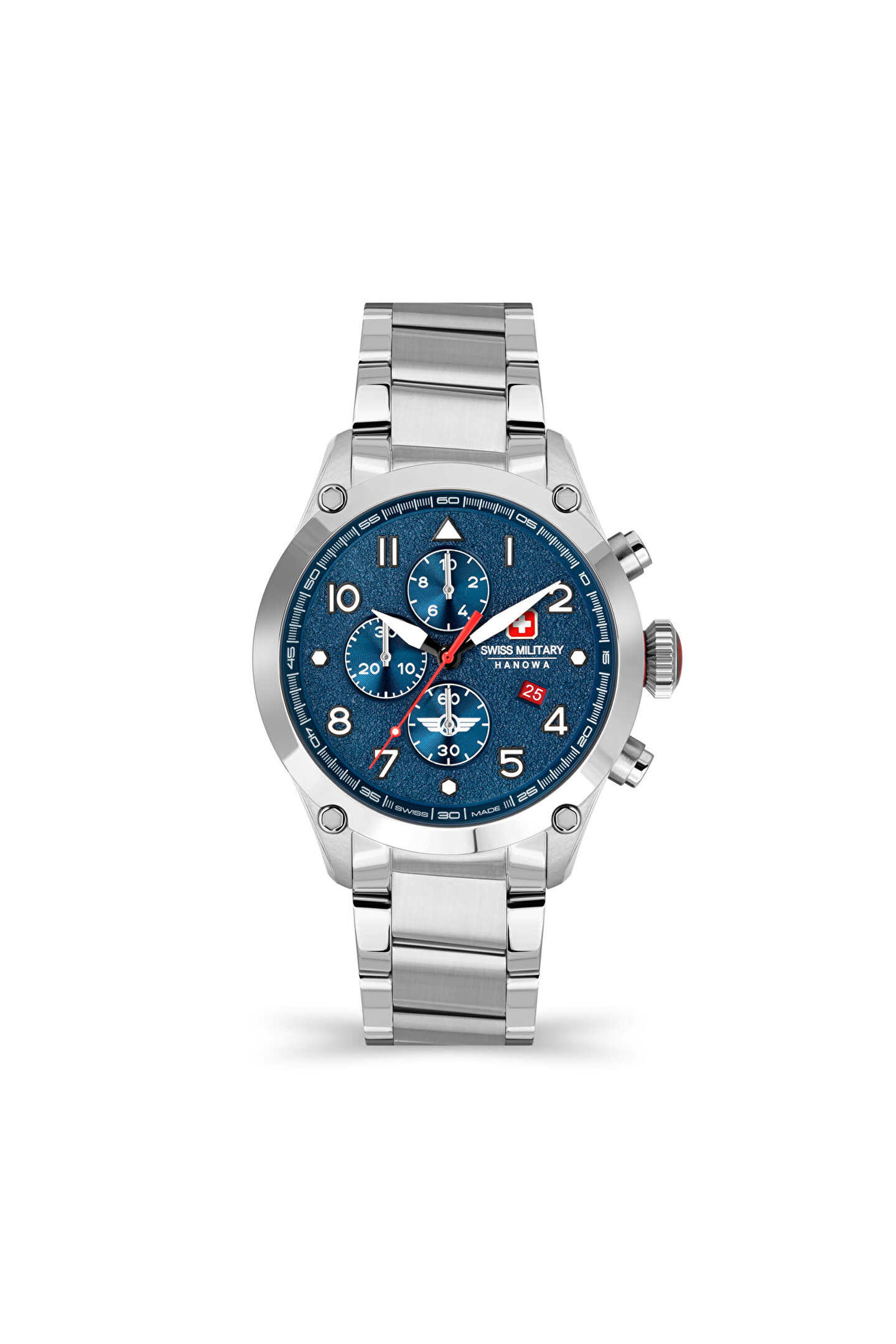 Marka:Swiss Military by Hanowa Alarm:Yok Cam Materyal:Safir Çap:44 Ekran Tipi:Analog Kadran Rengi:Lacivert Kadran Şekli:Yuvarlak Kasa Materyali:Çelik Kasa Rengi:Gümüş Kordon Materyali:Çelik Kordon Rengi:Gümüş Kronometre:Var Mekanizma:Quartz (Pilli) Su Geçirmezlik:10 ATM Takvim:Var