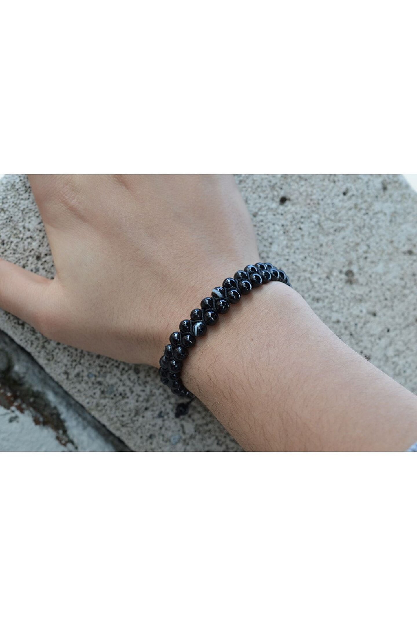 Siyah Damarlı 6 mm Küre Kesim Akik Çift Sıra Örgülü Bileklik AKİK DOGALTAŞ FAYDALARI Kişiyi ruhsal açıdan korur. ; Strese karşı koruyucu etkisi vardır. ; İnsanı negatif enerjiden kurtarır. ; Cilt hastalıklarına iyi gelir. ; Bedeni güçlendirici etkisi vardır. ; Kendini ifade etmekte zorlananlara iyi gelir. ; Ağrıları azaltır. ; Taşıyan kişiyi tehlikelere karşı koruyucu etkisi vardır. ; Kalp rahatsızlıklarını engeller. ; Taşıyan kişiyi olumsuzluklardan koruma etkisi vardır. ; Metabolizmayı hızlandırır. ; Mide ve bağırsak sorunlarının giderilmesine yardımcı olur. ; Kemik ve diş yapısının güçlenmesini sağlar. ; Nazara karşı koruyucu etkisi vardır. ; Uykusuzluğa ve karabasana iyi gelir. ; Korkaklığa karşı iyi gelir. ; Gerçeklerin farkına varılmasını sağlar. ; İnsana mutluluk ve iyilik hissi verir. ; Akıl ve mantık gücünün gelişmesini sağlar. ; Damarları koruyucu etkisi vardır. ; Kişinin çevreyle uyumunu artırır. ; Bedenin gerginliğini alarak kişiye rahatlık verir. ; Hamilelik sürecinde anne ve bebek için koruyucu etkisi vardır. ; Tansiyonu dengeleyici özelliği vardır. ; Kişiyi sosyalleştirici etkisi vardır. ; Akik Nereden Çıkarılır? Dünyada ise akik taşının yoğun olarak çıkarıldığı ülkeler aşağıda olduğu gibidir. Amerika Birleşik Devletleri ; Almanya ; Mısır ; İtalya ; Çin ; Brezilya ; Meksika ; Uruguay ; Türkiye de ise akik taşının çıkarıldığı en yoğun bölge Karadeniz bölgesidir. Şehirler ve çıkan taşlar ise aşağıda olduğu gibidir: Bilecik: Yosunlu akik (agat) taşı. ; Çamlıdere ve Kızılcahamam: Taşlanmış ağaç akik ; Eskişehir: Bantlı akik ve dendritli akik taşı. ; Erzurum /Şenkaya: Çeşitli akik türleri çıkarılmaktadır. ; Yozgat: Kendine has desenleri olan taşlar çıkarılmaktadır. ; Bakımı Nasıldır? 15-20 günde bir toprağa bırakarak veya normal şebeke suyunda yıkayarak temizliğini kolayca yapabilirisiniz. ?