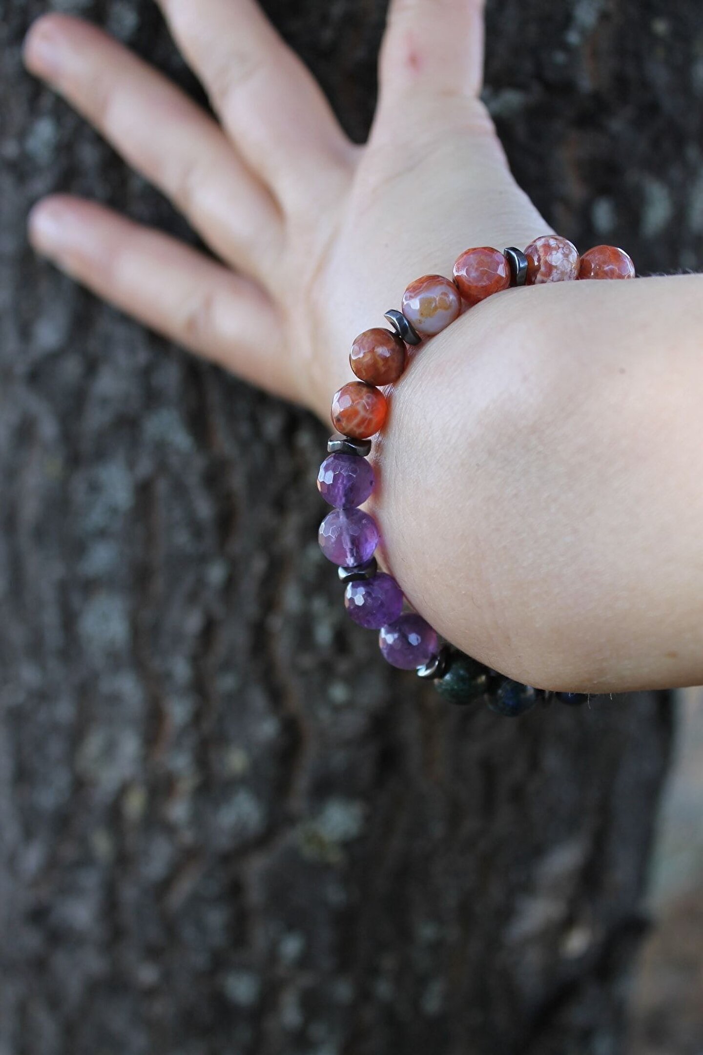 - Kova burcu bileklik, doğal taşların eşsiz güzelliğini ve enerjilerini yansıtan bir aksesuardır; - Lapis lazuli, aventurin, apatit, opal, akik, hematit ve azurit gibi farklı doğaltaş türlerini bir araya getirerek, her bir bileşenin benzersiz özelliklerini bir araya getirir; - 8 mm çapındaki küre formu, hem şık bir görünüm sunar hem de bileklerinize rahat bir kullanım sağlar; - Doğal taş materyali sayesinde her parça benzersizdir ve her kullanımda farklı bir deneyim sunar;