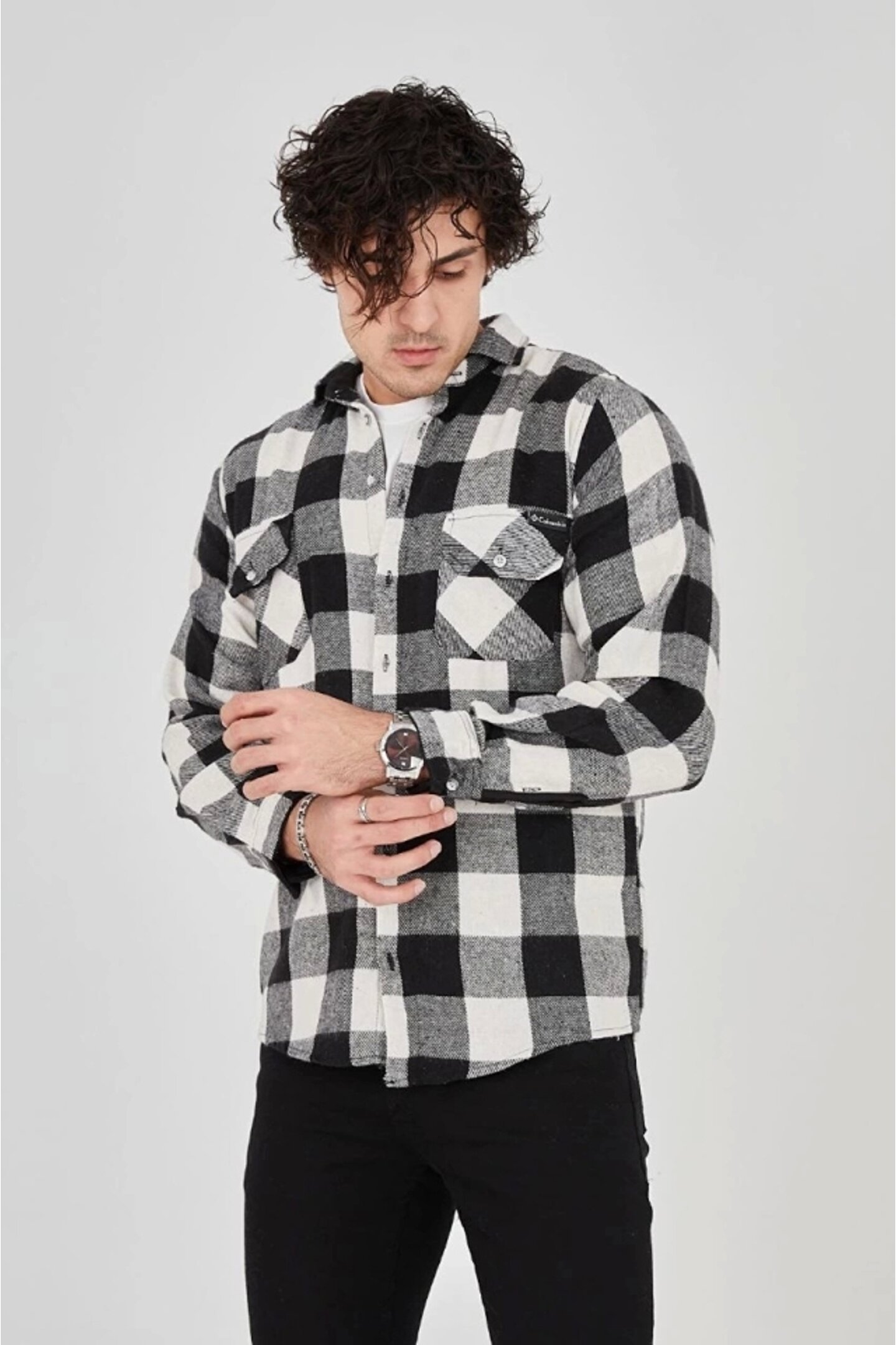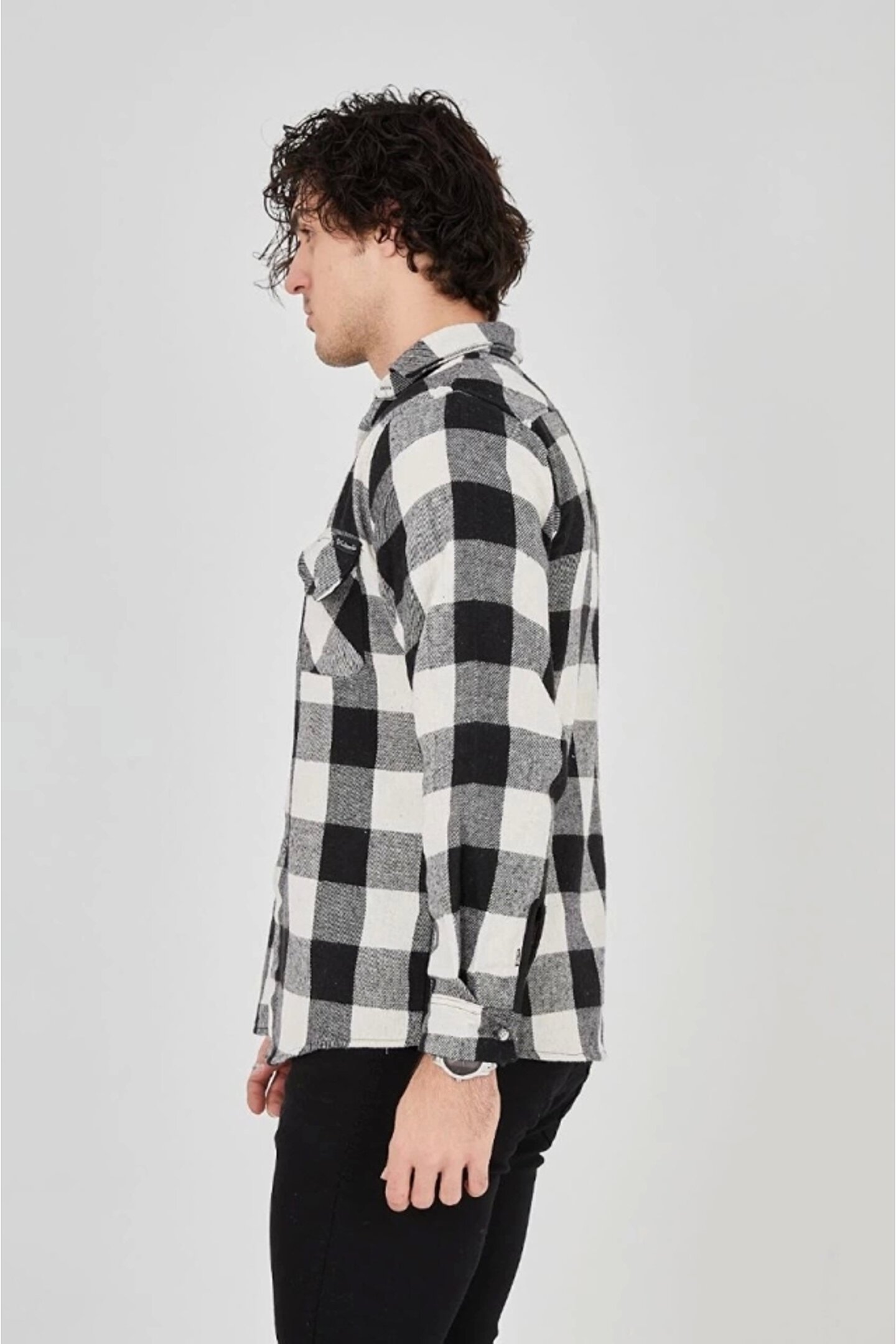Erkek Uzun Kollu Oduncu Gömlek - Siyah