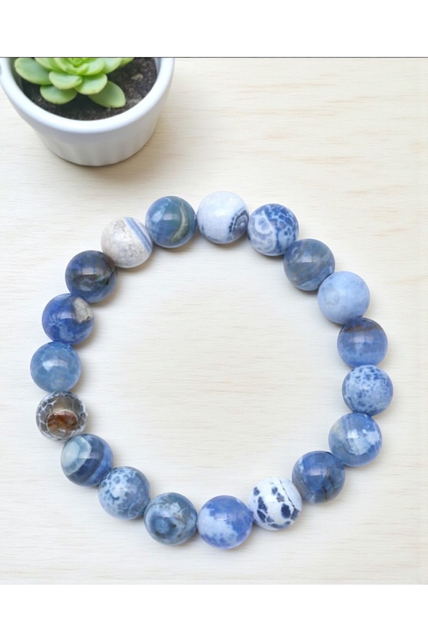 Taş-Mir Akik Doğal Taş Bileklik 10 mm Yuvarlak Kesim