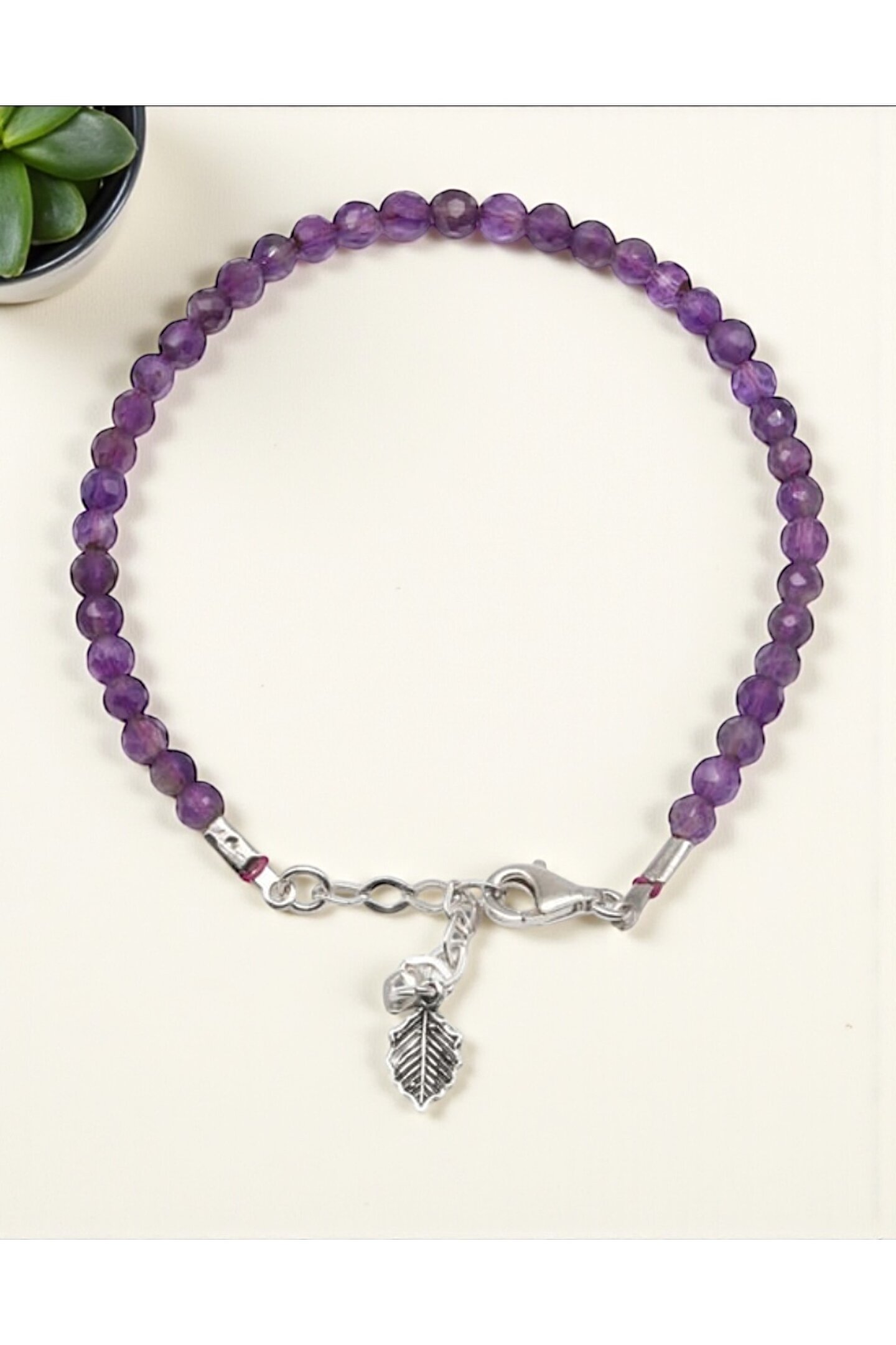 Taş-Mir Ametist Doğal Taş 925 Ayar Gümüş Aparatlı Bileklik